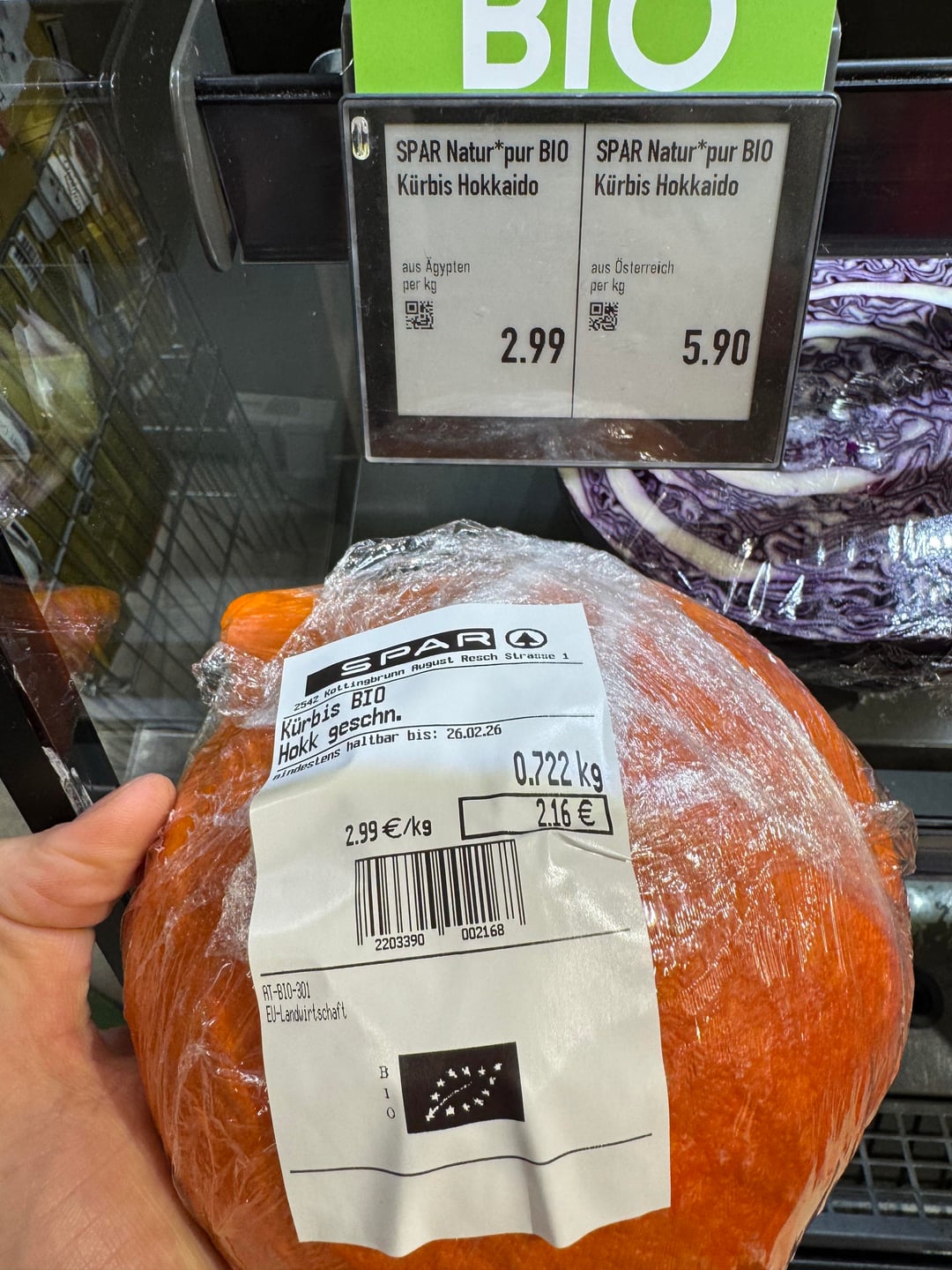 Die zweite nicht abgebildete Variante war Hokkaido gewürfelt und im Kilopreis teurer was mich zu der Annahme geführt hat dass ich dann wenigstens das österreichische Produkt kaufe… aber das grenzt schon bisl an Konsumententäuschung oder?
