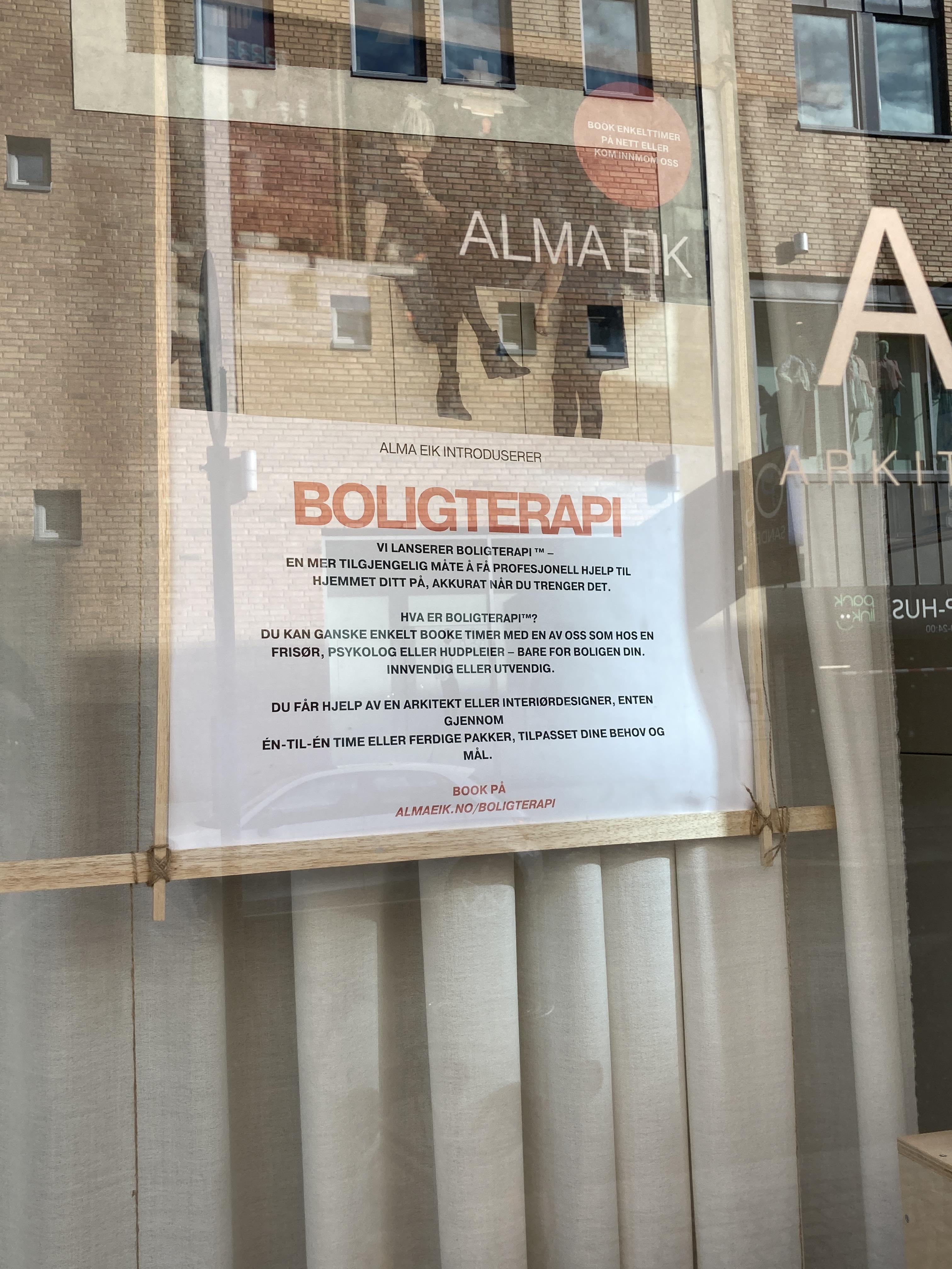 Habe es heute in Kristiansand gesehen. Zuerst dachte ich, es sei eine Paartherapie, aber nein – nur ich und die Wohnung müssen an der Beziehung arbeiten 😂