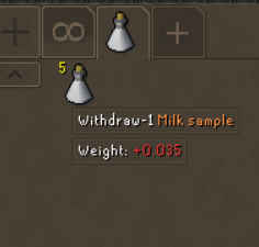 1. Drop trick doesn’t work since it has a destroy option. You have to bank and your character will say you lost your sample.