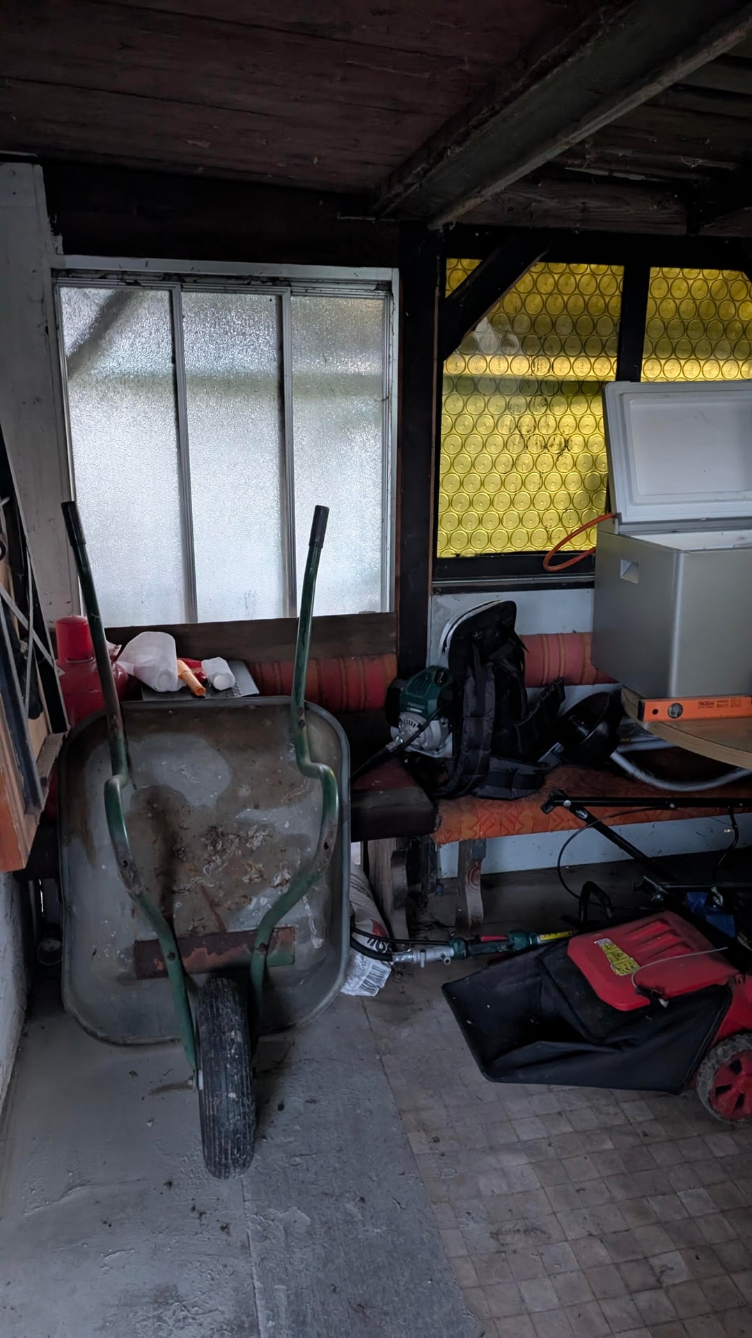 Am liebsten würde ich die Kiste eines Tages sanieren, einen Kamin, zwei Sessel und ein Bett reinstellen, um auch an kälteren Tagen im Garten zu verweilen (wir zelten hier gern an wärmeren Tagen).