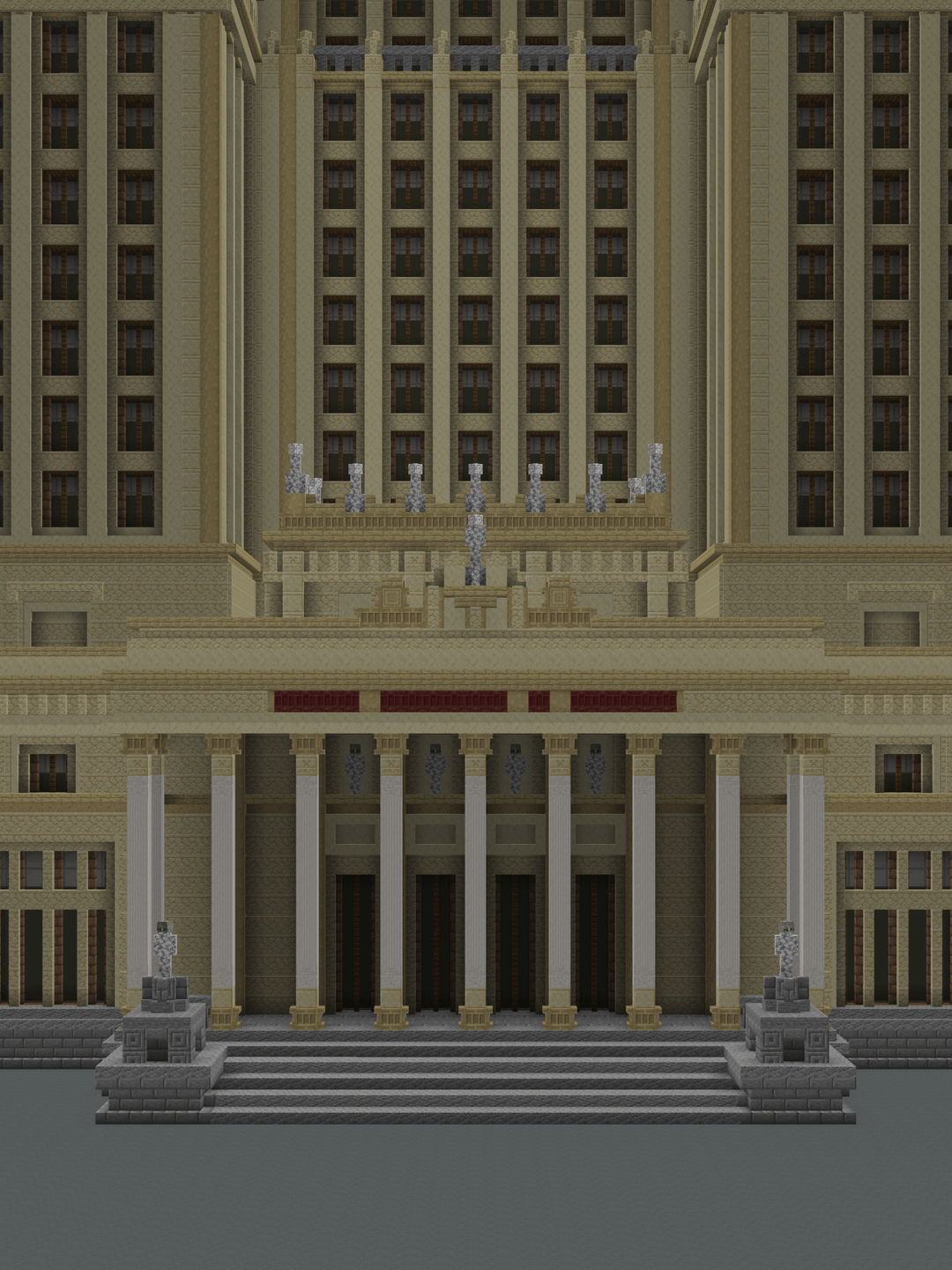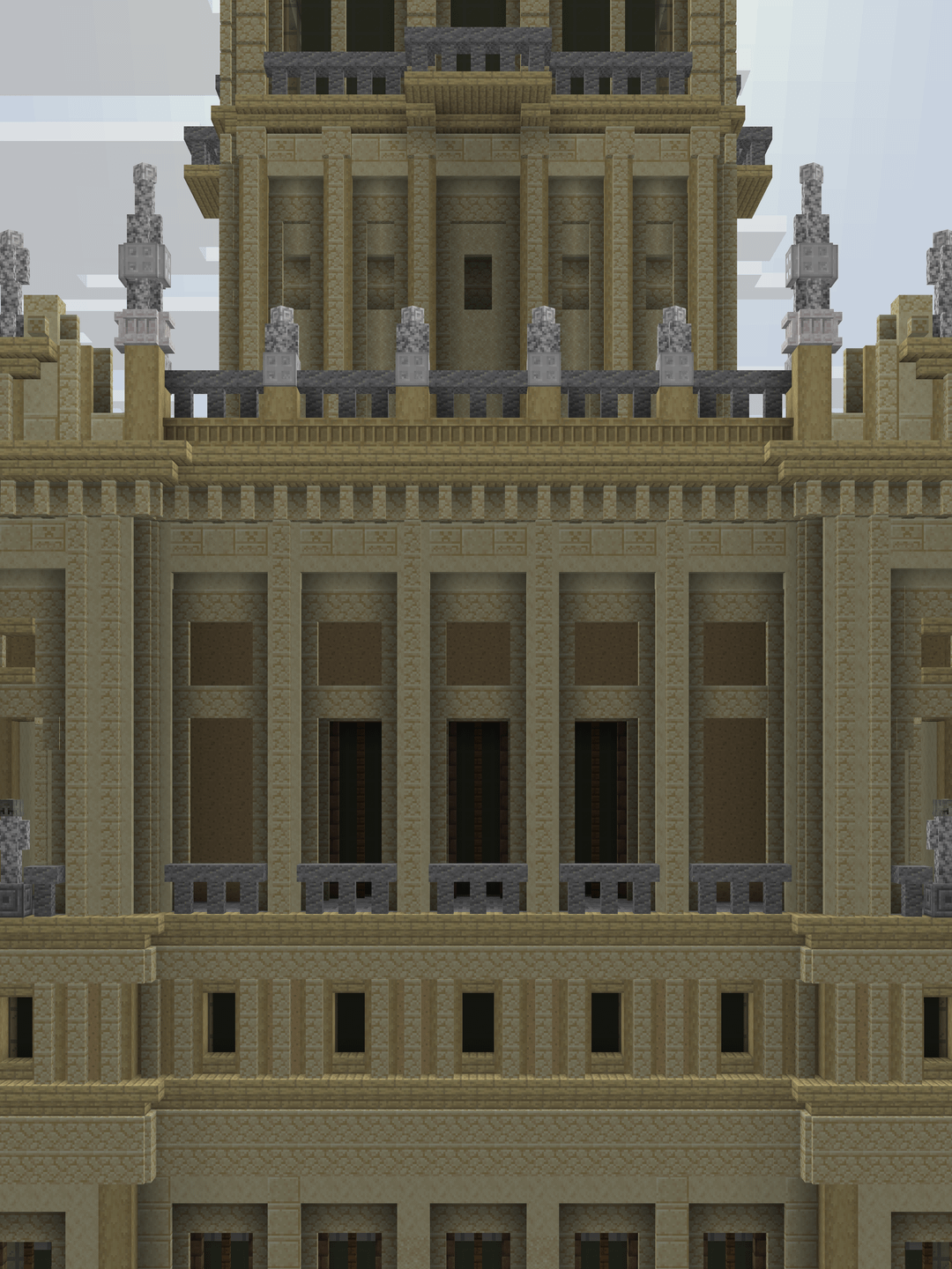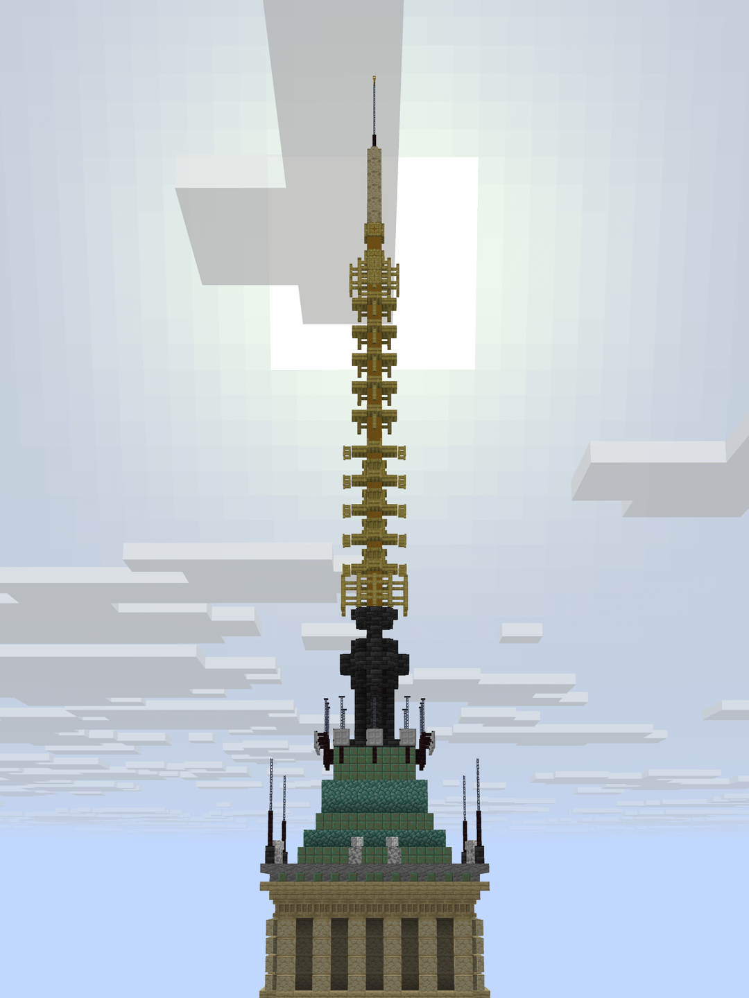 Sam się kiedyś przymierzałem (w czasach wersji 1.7.10), ale po dwóch piętrach zabrakło mi bloków, a potem czasu (chciałem akurat zrobić cały w trybie przetrwania, zakładam że budowałeś w trybie kreatywnym ^^).