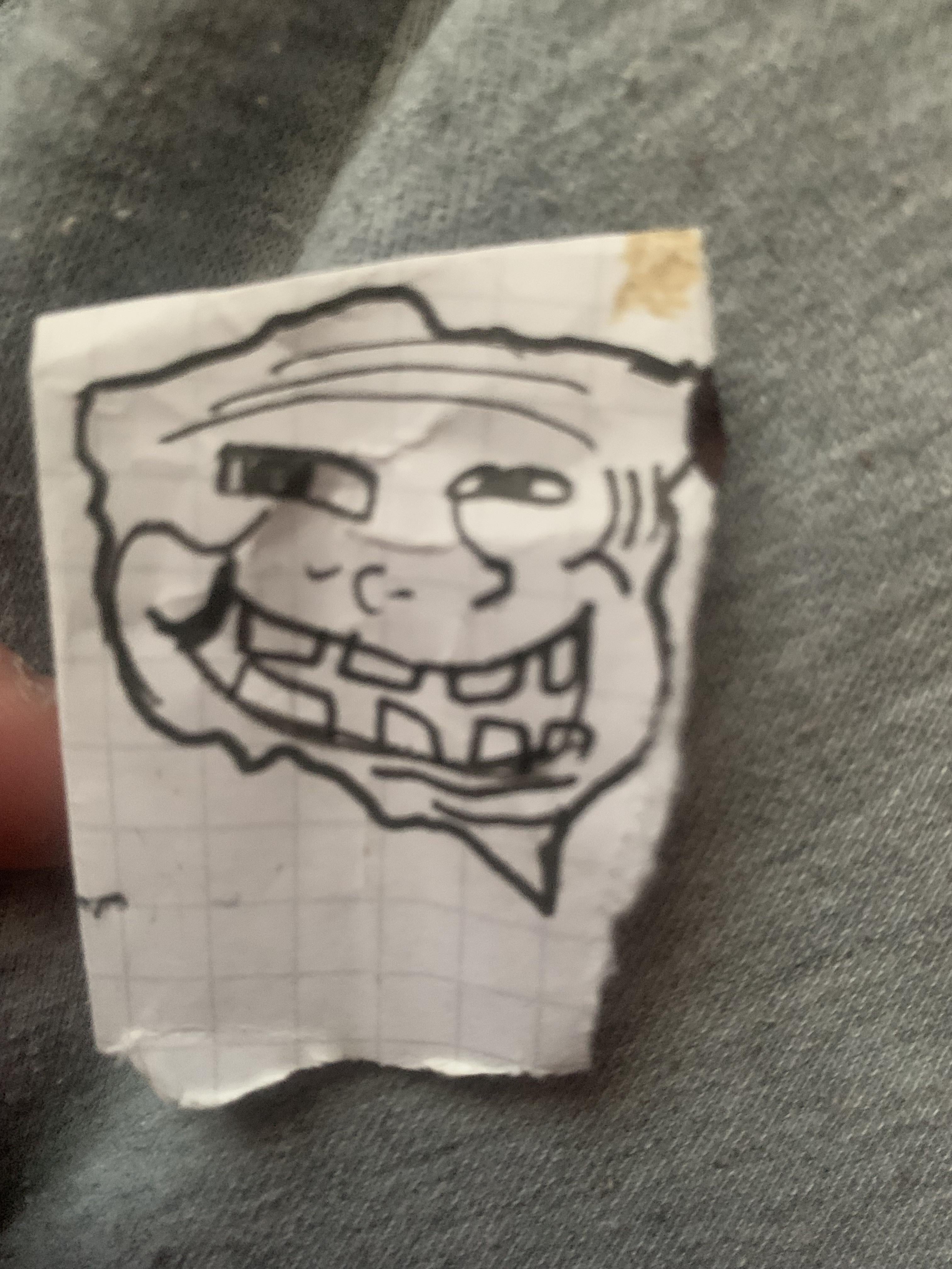 Als ich 15 war, bemerkte ich zusammen mit meinen Freunden, dass Polen wie das Trollgesicht aussieht, also habe ich es gezeichnet und ja, das tut es, und es dann vergessen. Jetzt, da ich 18 bin, habe ich das herausgekramt, um es auf Reddit zu posten, und ich werde es wieder vergessen