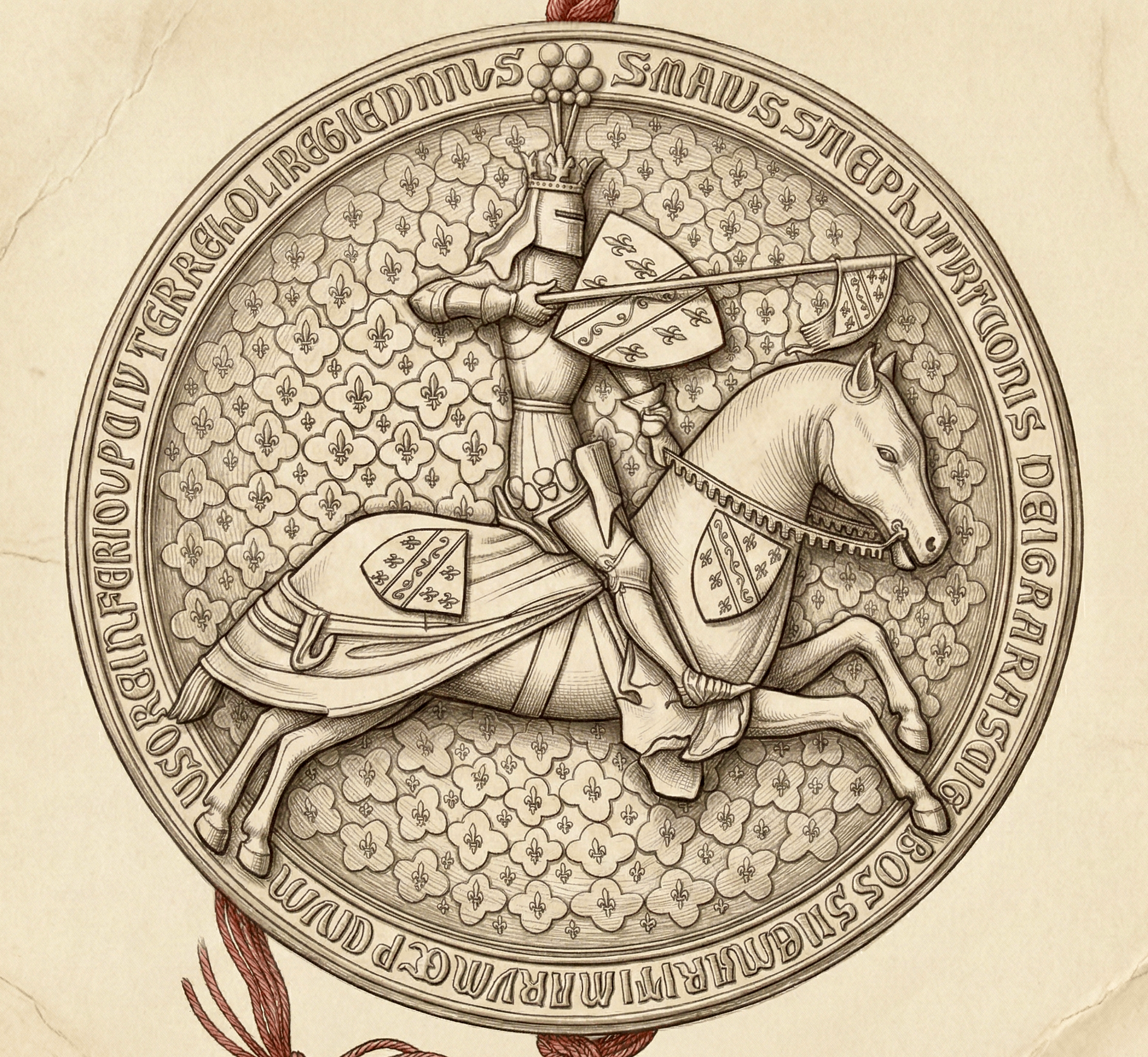 Mit einer rekonstruierten Zeichnung der Rückseite des großen hängenden doppelseitigen Siegels von König Tvrtko, das für die Herstellung von verwendet wurde Wappen der Republik Bosnien und Herzegowina.svg). Sie können das von König Dabšia verwendete Original in diesem Beitrag im zweiten Bild sehen: Vorder- und Rückseite des großen hängenden doppelseitigen Siegels von König Stefan Tvrtko, das von König Stefan Dabiša verwendet wurde.