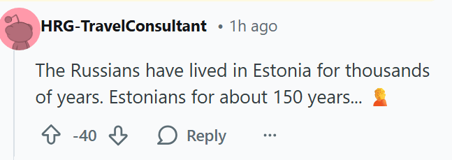 In Gesprächen mit Russen ist mir aufgefallen, dass sie oft sehr seltsame Vorstellungen von der Geschichte Estlands haben. Ein Russe erzählte einmal, wie ihr Geschichtslehrer an einer russischen Schule in Estland ihnen gesagt hatte, sie sollten nicht glauben, was im Lehrbuch steht, es sei alles estnische Propaganda. Ein russischer Kollege versuchte mich einmal davon zu überzeugen, dass es vor dem Krieg kein unabhängiges Estland gab und dass Estland bis 1991 immer ein Teil Russlands gewesen sei.