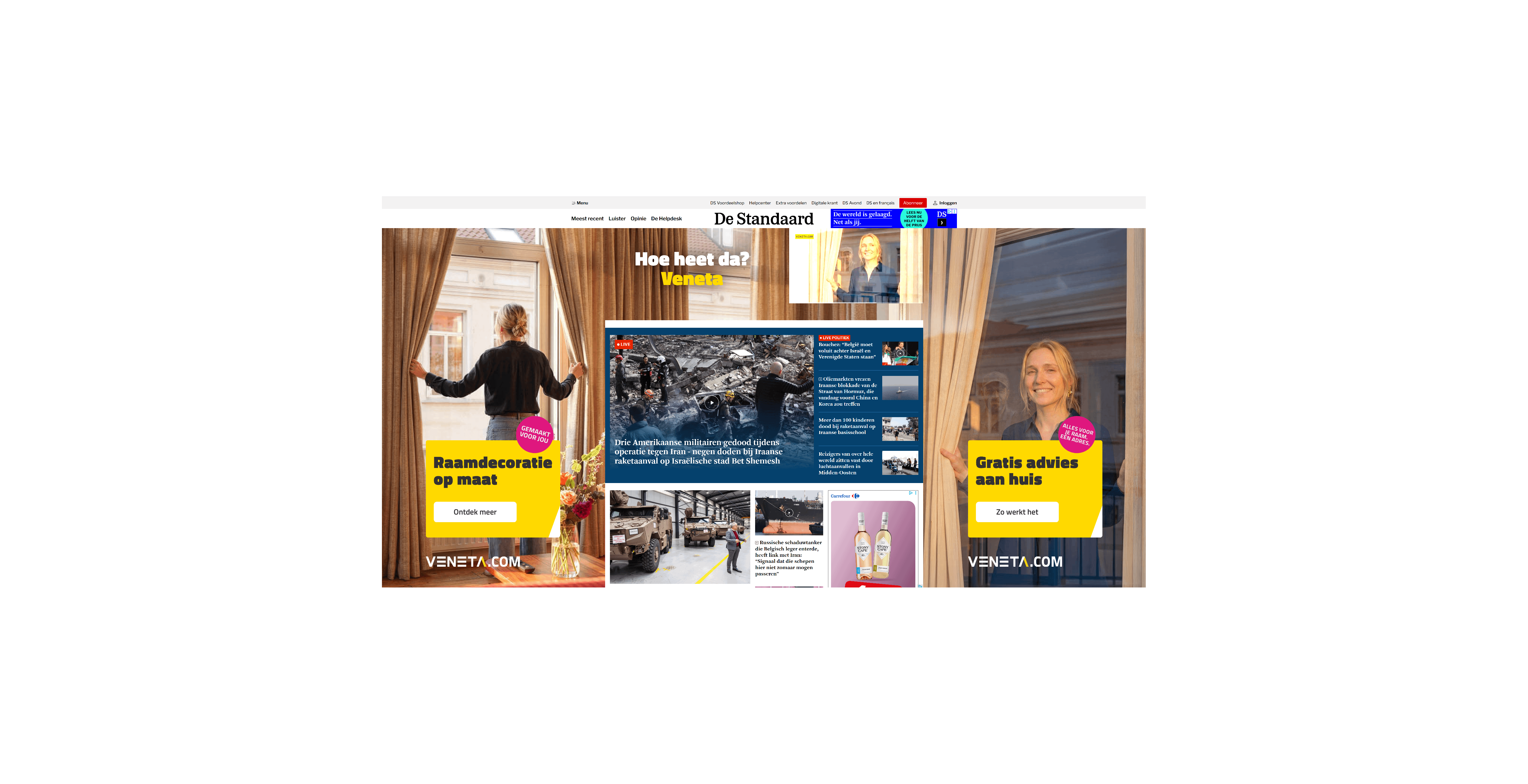 Ich habe versehentlich mit einem Adblocker-freien Browser zum Standaard navigiert (neuer Image-Build usw.). Ich war ehrlich gesagt überrascht von der Werbefläche hier. Ich verstehe, dass Qualitätsjournalismus finanziert werden muss, aber wenn die animierten Anzeigen mehr Pixel und Aufmerksamkeit beanspruchen als die Schlagzeilen, fühlt es sich etwas zu viel an.