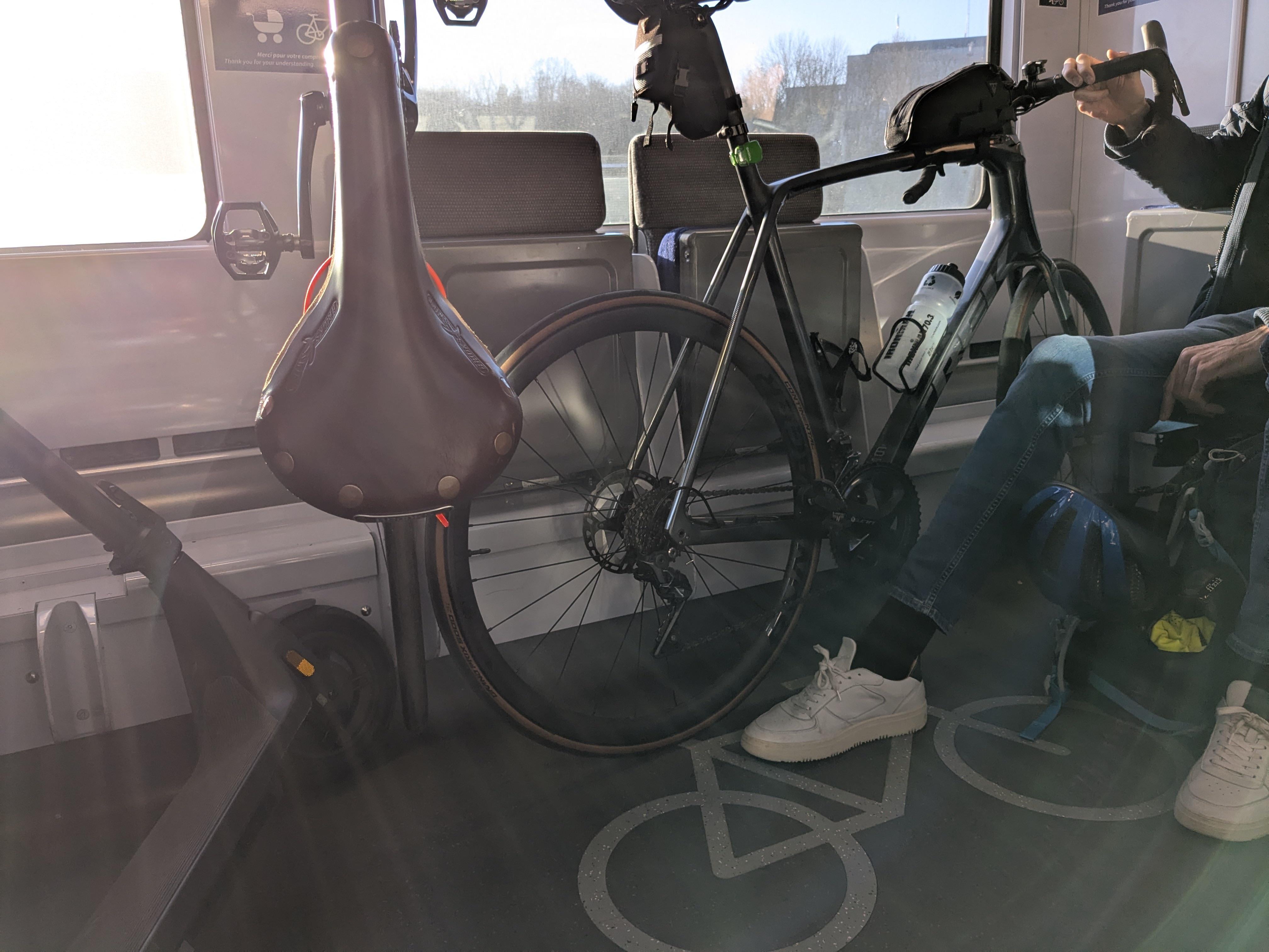 Dieser Typ parkte und blockierte fünf Fahrradhallen. Er machte keine Anstalten, sich zu bewegen, als ich einstieg, und machte auch keine Anstalten, mein Fahrrad schräg aufzuhängen, weil seins blockierte, und ließ es dann während der gesamten Fahrt hin und her schaukeln.