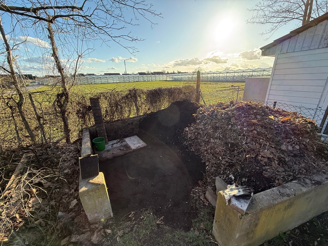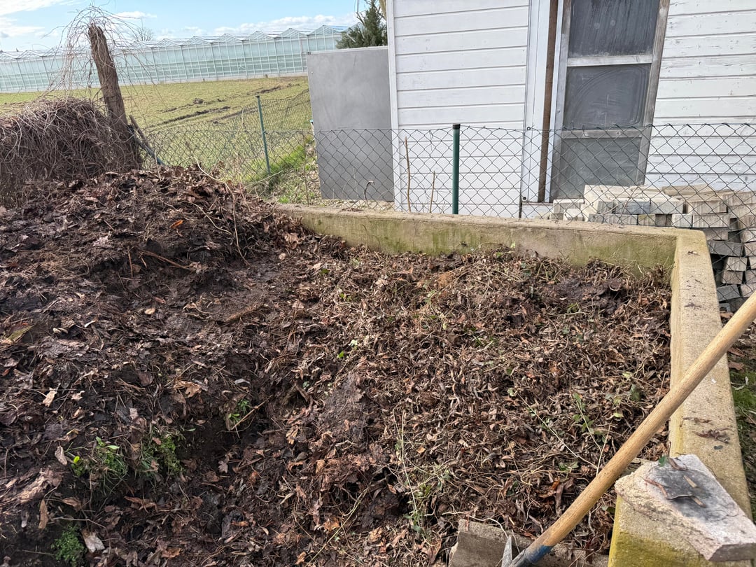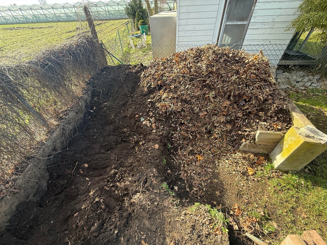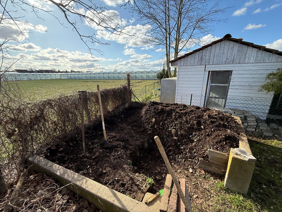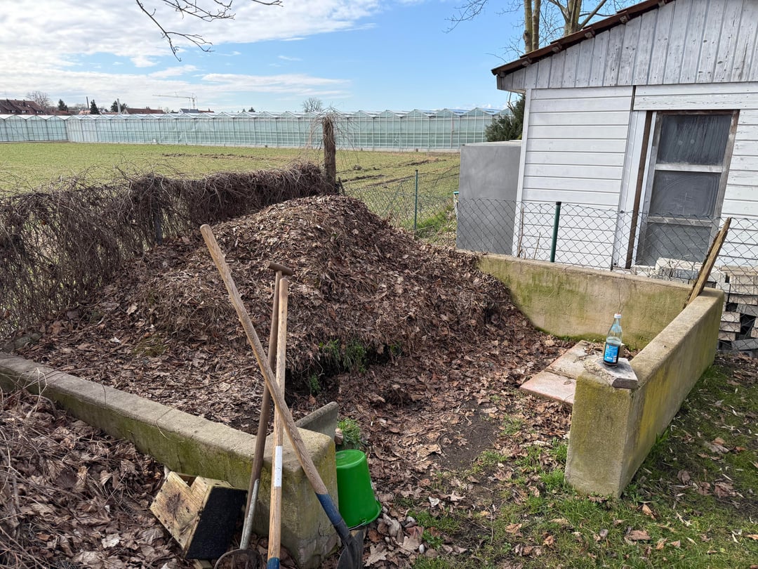 Nachdem am Wochenende die ersten Sonnenstrahlen am Himmel waren, und ich gelesen habe, dass Februar/März ein guter Zeitpunkt ist, habe ich mich an den Kompost gemacht. Wir haben ein großes Freizeitgrundstück, daher kommt da einiges zusammen. Den Kompost würde ich auf ca. 10qm Fläche schätzen.