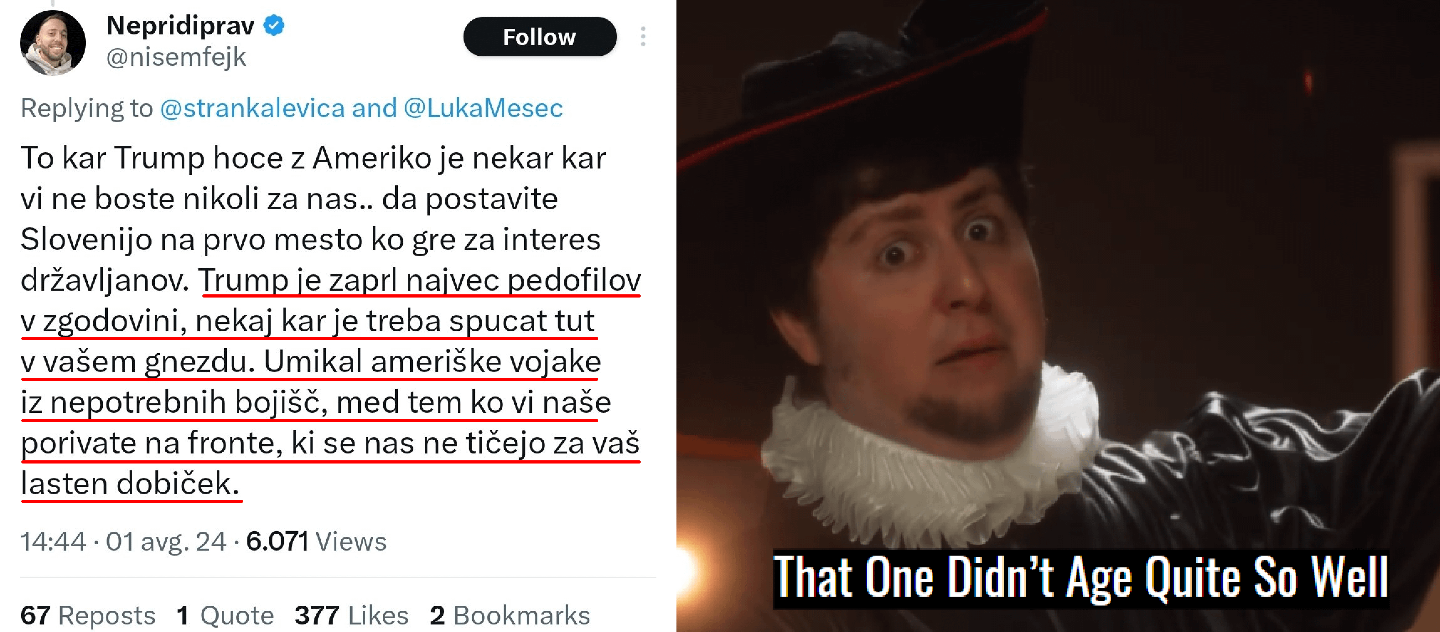 Po moje je folk tu po ene 200 objavah dojel da je ta tip pač še en right-wing grifter. Ne rabimo še 200 objav na isto temo.