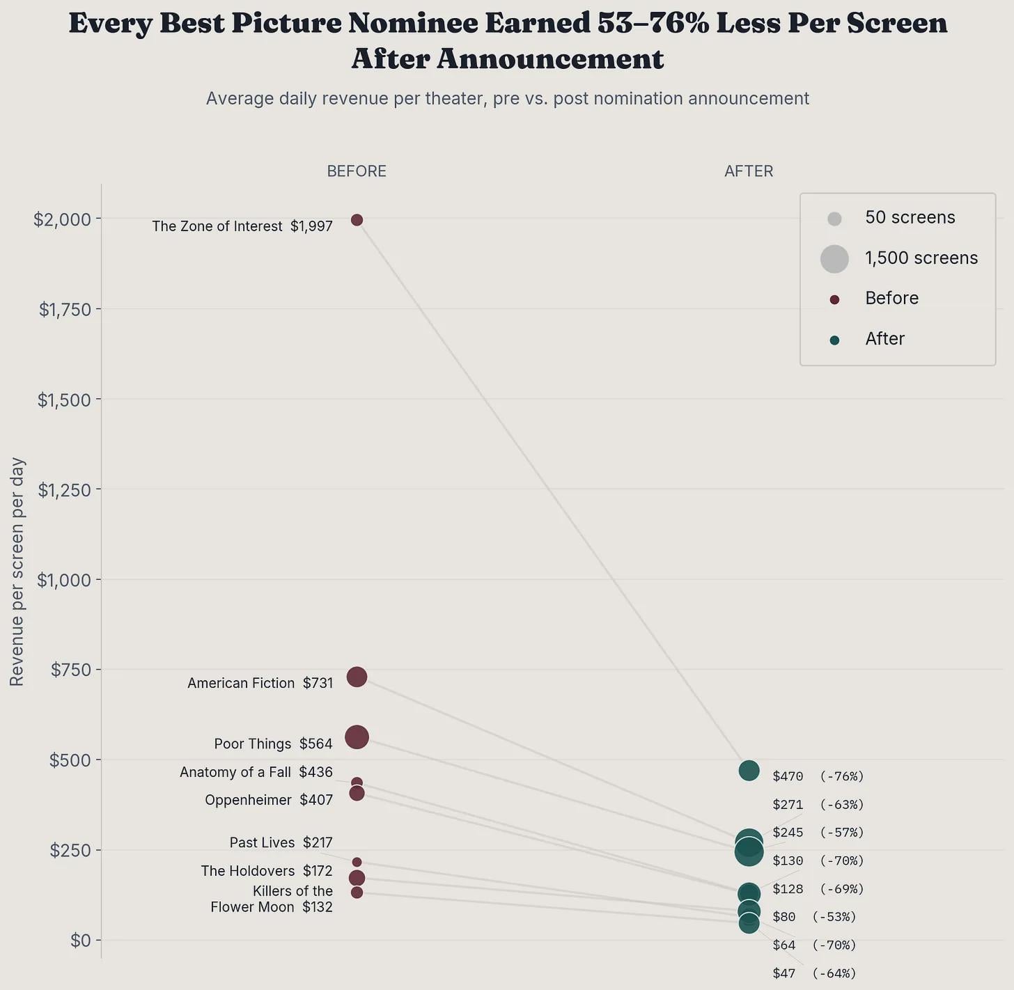 [OC] Nominierte für den besten Film erhalten mehr Bildschirme, verdienen aber weniger pro Bildschirm