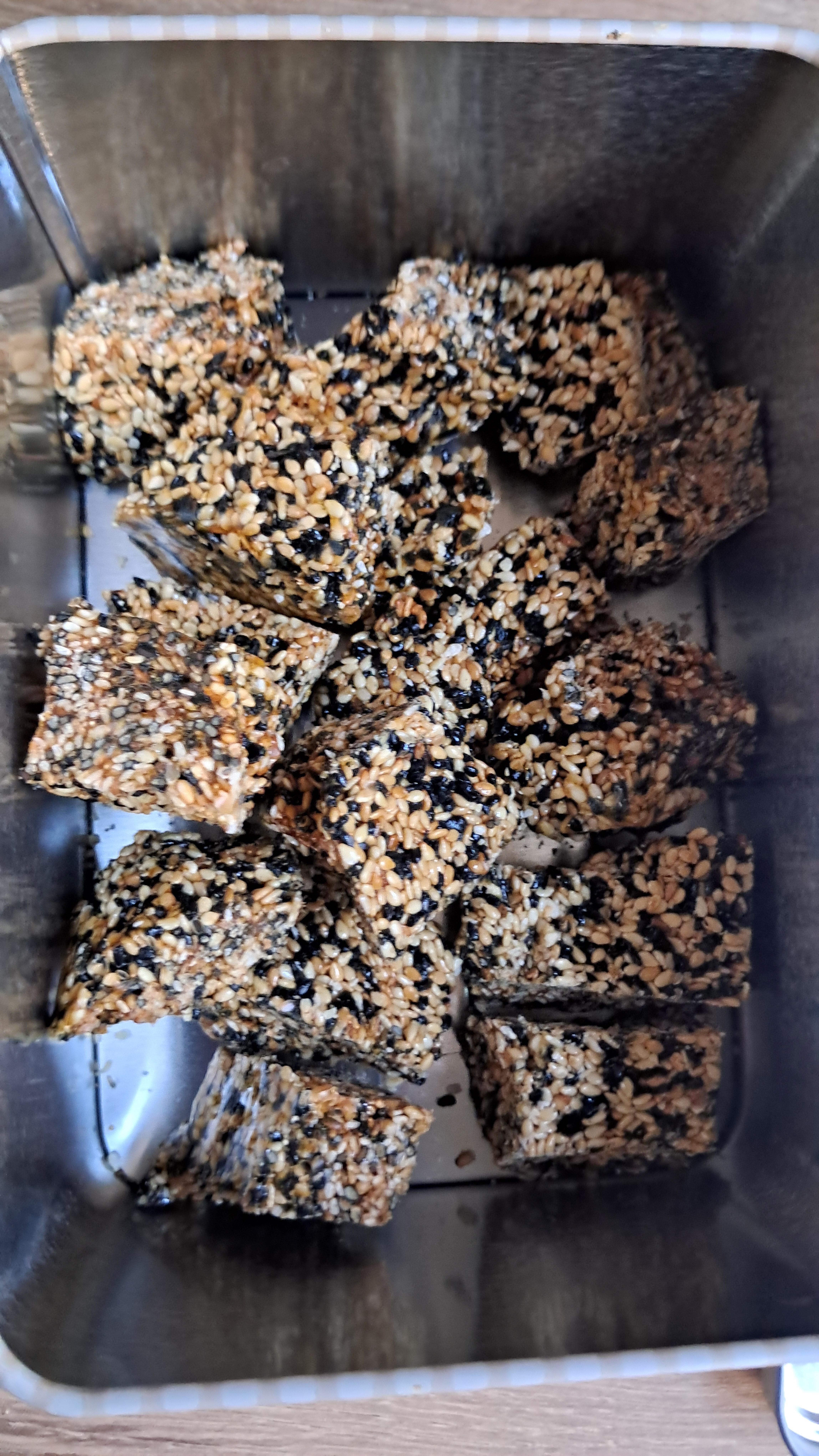Itrion ist eine antike Süßigkeit aus Griechenland, die quasi nur aus Sesam und Honig besteht, ich habe hier noch Schwarzkümmel verwendet.