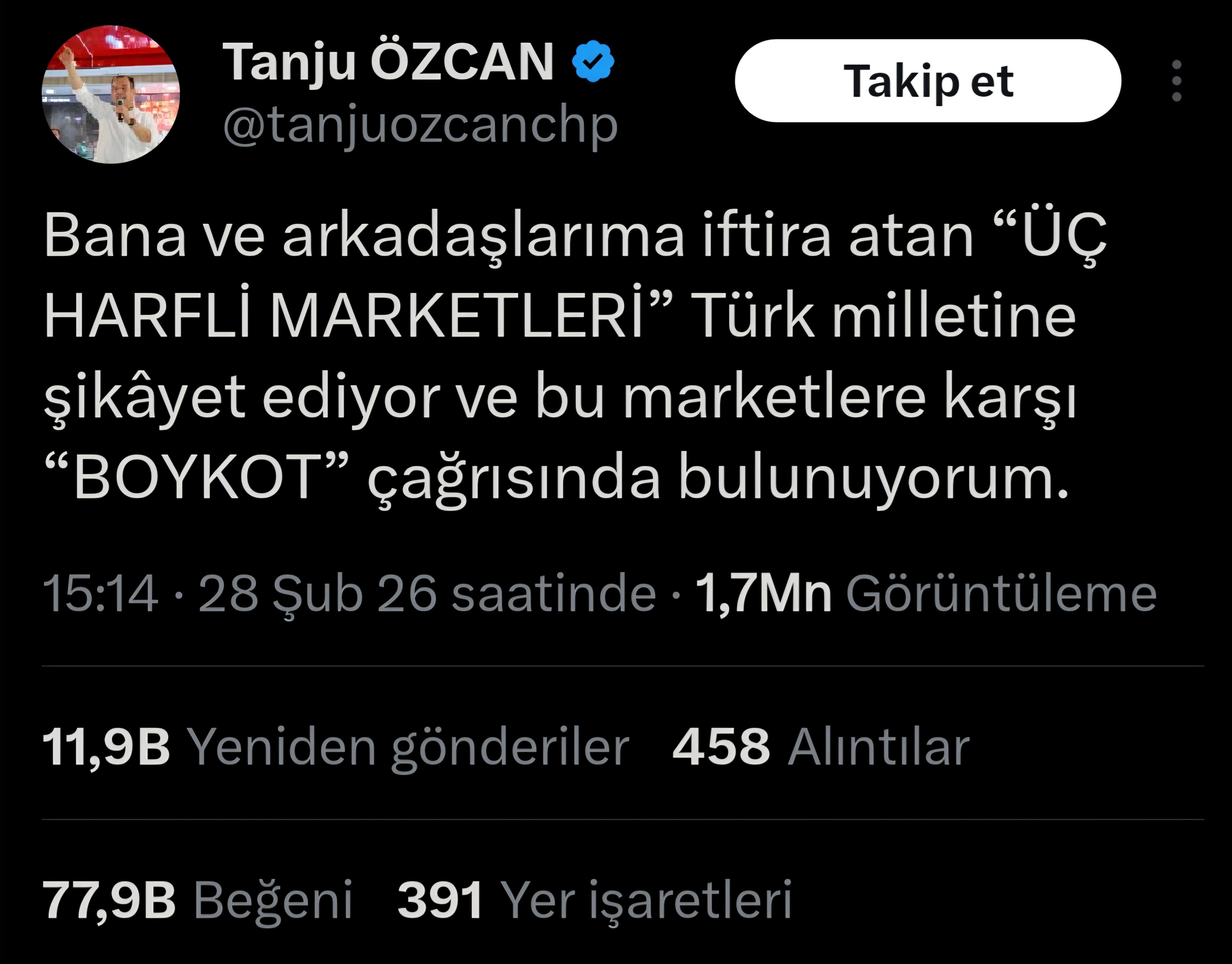 Wird dem Boykottaufruf von Tanju Özcan Folge geleistet? (Besonders an Orten, an denen es keine größeren Kettenmärkte gibt) Muss auf einen Anruf von Özgür Özel zur Unterstützung gewartet werden? Was denken Sie?