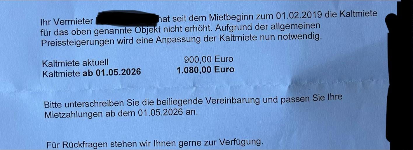 Wir vermieten seit nunmehr 7 Jahren gerne unsere jetzige Wohnung und wurden gerade von diesem Brief getroffen. Es ist wahr, dass unsere Miete in dieser Zeit nicht gestiegen ist, was ich als Segen betrachte, aber können sie das einfach aus dem Nichts tun? Es gab 7 Jahre lang keine Verbesserungen oder irgendetwas am Hals. Wenn es in ihrem gesetzlichen Recht liegt, komme ich dem gerne nach, frage mich aber nur, ob ich dagegen ankämpfen kann. Danke schön.