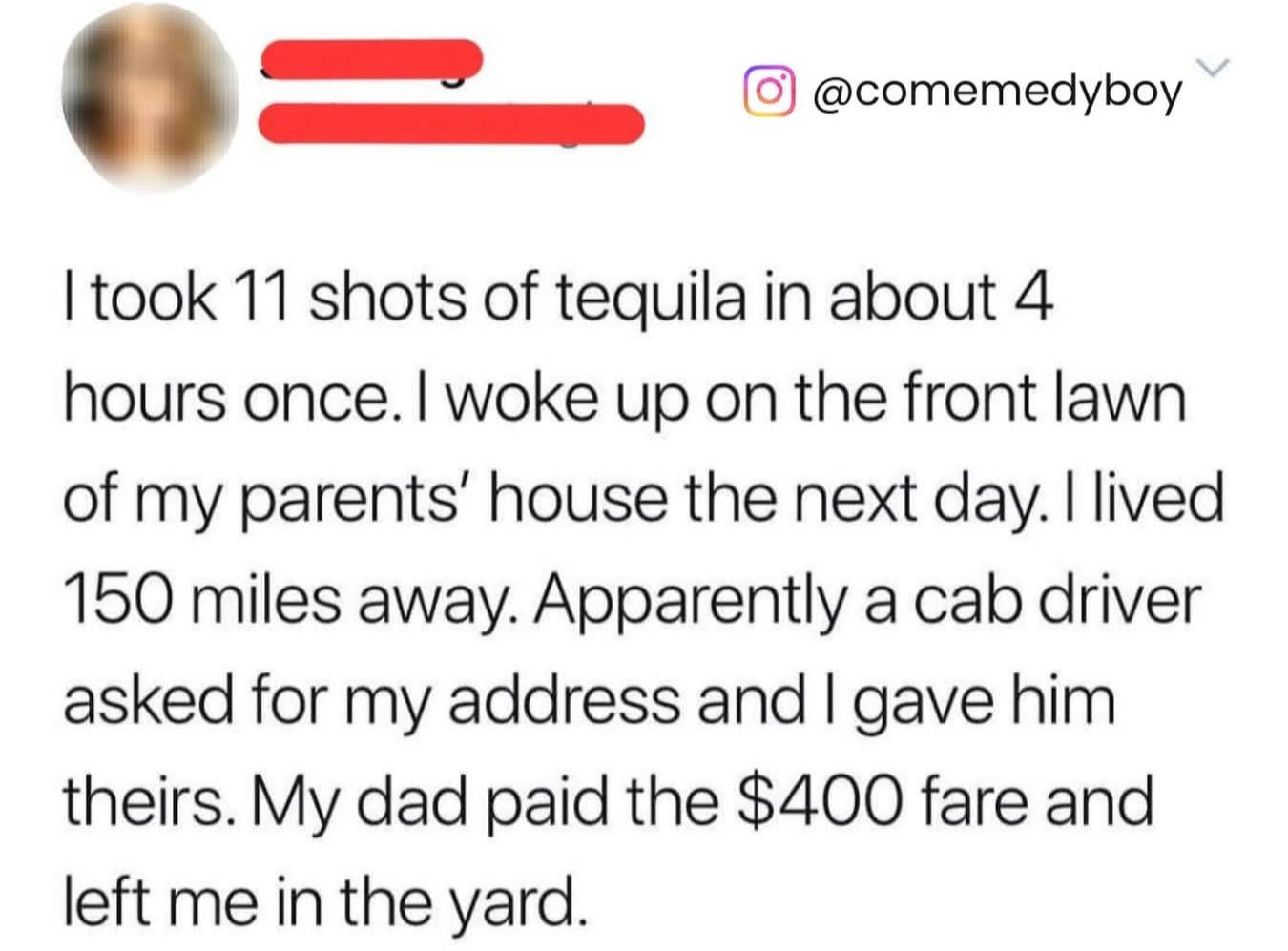 Ја испив комај флаша текила еднаш и сеуште не знам како се вратив дома сам