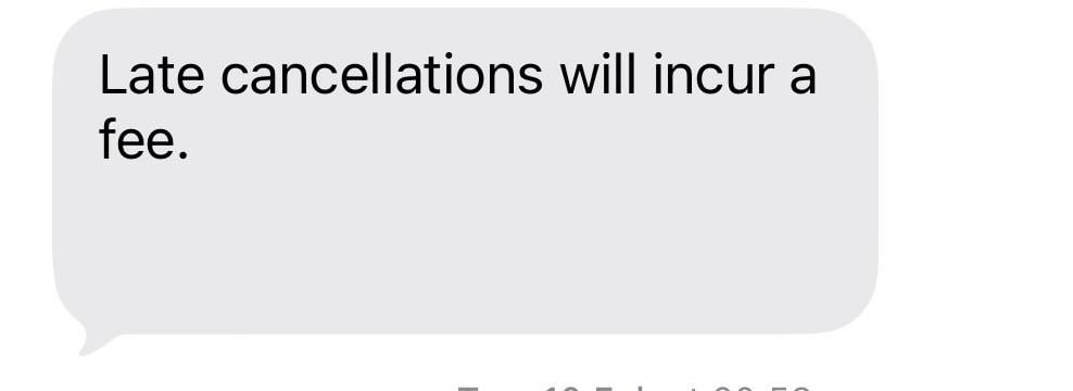 Pretty normal thing that late appointment cancellations can incur fees. Makes sense no?