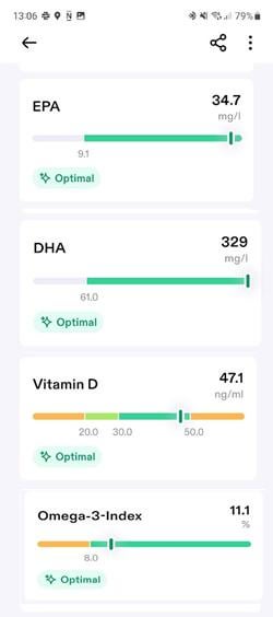 Ich habe mal meinen Omega und Vitamin D Spiegel bestimmen lassen, um zu gucken, ob die Ergänzung, die ich nehme, auch wirklich hilft… sieht ganz gut aus – jedenfalls bei mir (kann natürlich bei jeder/m anders sein…) Von VeggieDina