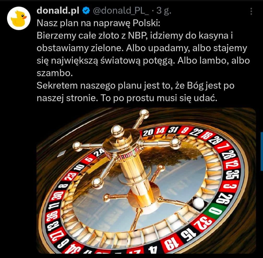 To w nawiązaniu do nawrockiego i tego typa zero? Myślę że powinni być skazani za zdradę narodową, jak chcą polskie złoto wyprzedawać. kłaniam się polski patriota