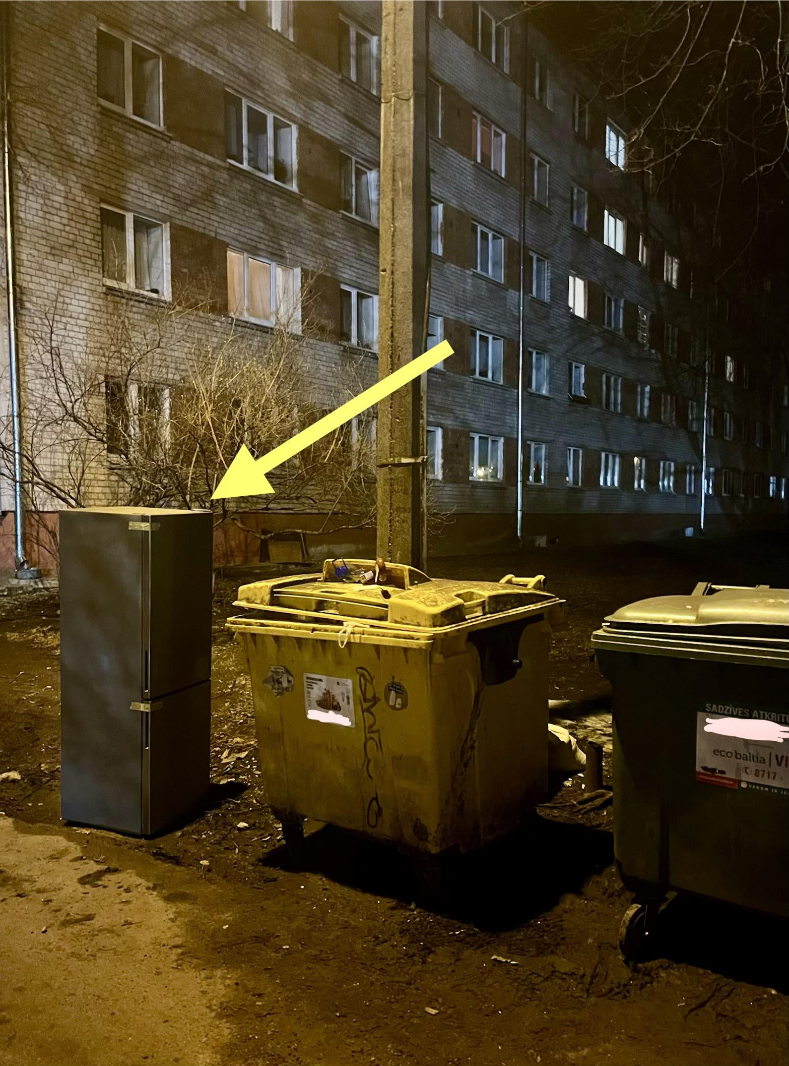 Mums nebija nekādu zīmju, hroniski visi vislaik atstāja kaut kādas mēbeles un šruntus. Vienu vai divas reizes mēnesī piebrauca atsevišķa atkritumu mašīna, savāca, saspieda uz vietas mašīnā un aizveda. Tā nebija parasto atkritumu kontaineru mašīna.