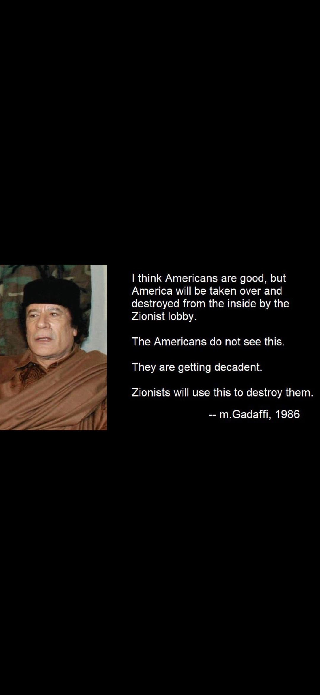 Gadaffi is one of those people who is right about so much but at the same time is a total piece of shit so it becomes hard to reference him positively.