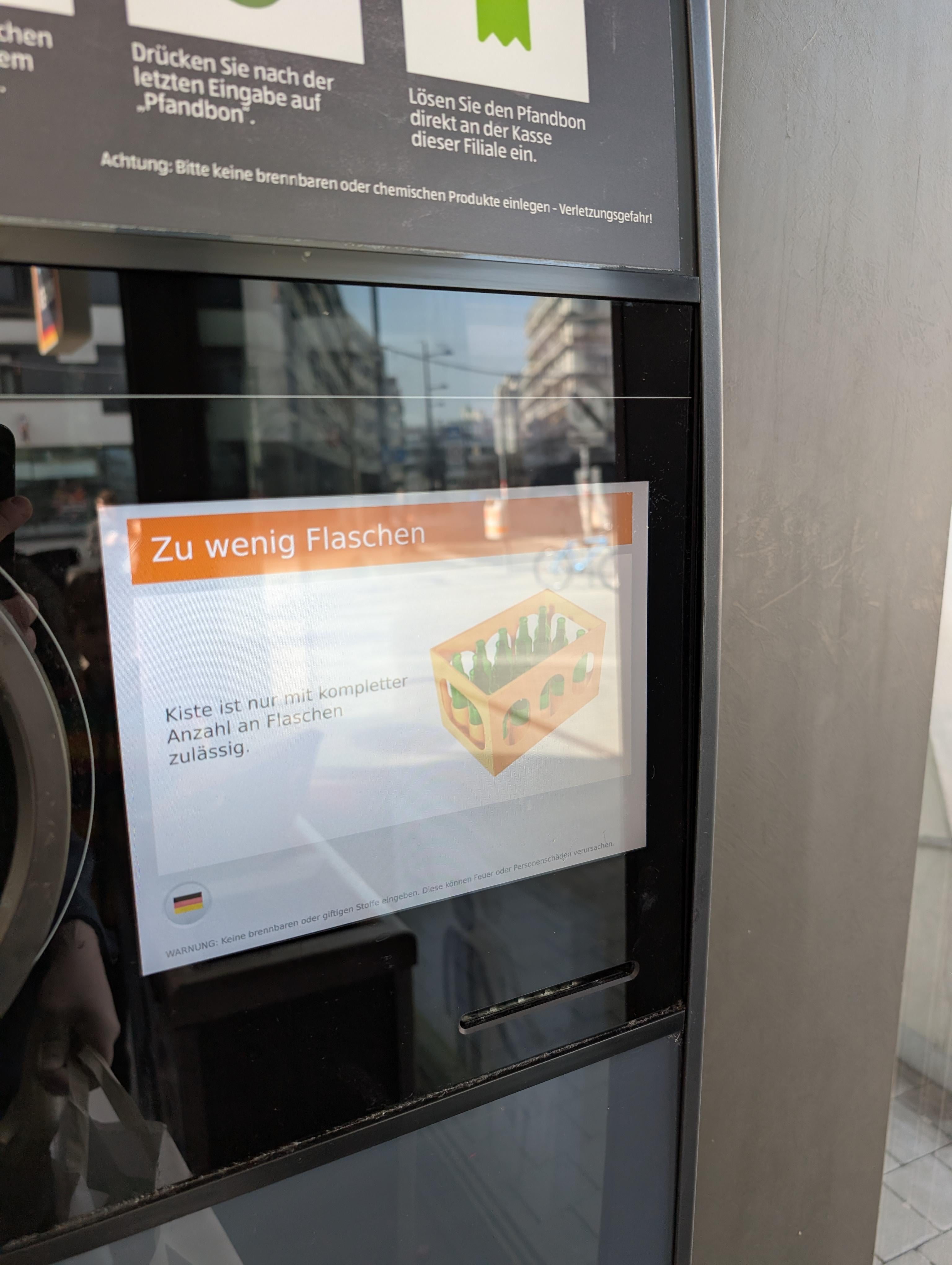 Ok, seit wann kann man Bierkisten nimmer zurückgeben wenn die Flaschenanzahl net passt? Jetzt kann ich in den Markt rennen, irgendwen suchen gehen, dem die Kiste in die Hand drücken und auf meinen Pfand verzichten. Die lassen sich jeden Tag was Neues einfallen nur zum Leut‘ pflanzen…