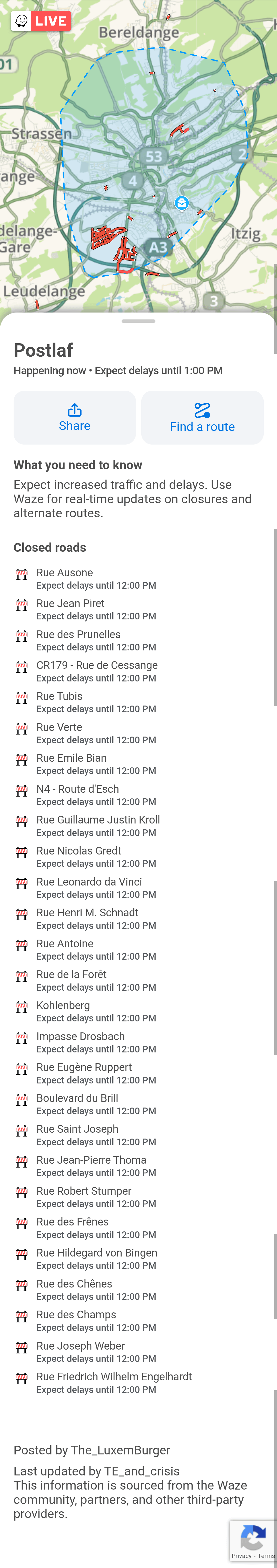 Gepostet von The_LuxemBurger Zuletzt aktualisiert von TE_and_crisis Diese Informationen stammen von der Waze-Community, Partnern und anderen Drittanbietern.
