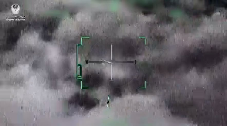 Das Verteidigungsministerium der Vereinigten Arabischen Emirate veröffentlicht Aufnahmen, die zeigen, wie seine Luftverteidigungskräfte iranische Drohnen abfangen, die sich dem Land nähern.
