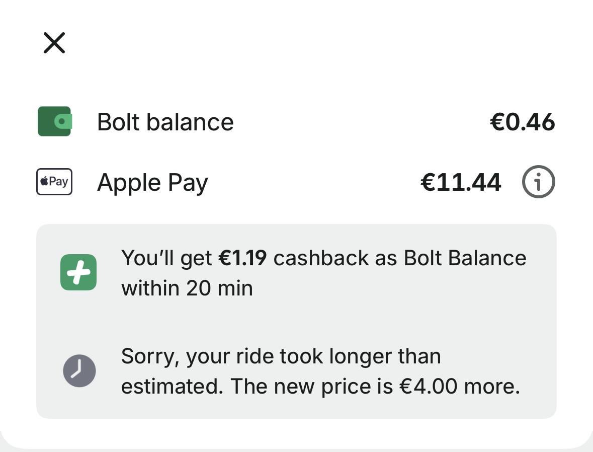 War das schon immer so? Ich habe eine Fahrt bestellt und 7 € bezahlt. Jetzt sehe ich, dass Bolt aufgrund der Verwirrung des Fahrers einen Aufpreis von 4 Euro hinzugefügt hat, der automatisch vom Konto abgebucht wurde😃