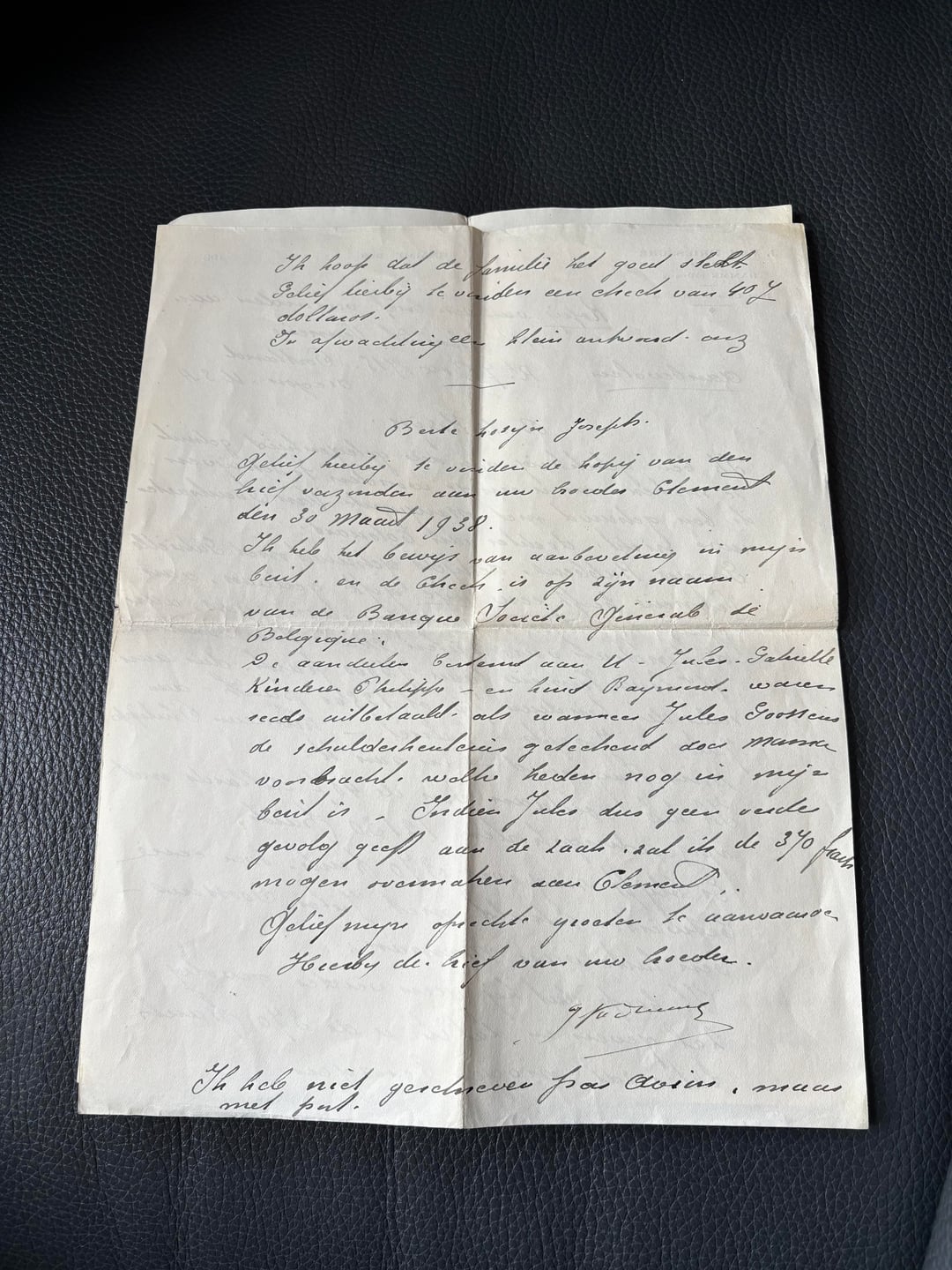 As some others have said, it’s very late in Belgium. I am pretty good at handwriting and will attempt to translate the whole thing word for word later when I have some time if no one else does it before then. At a quick glance it’s a letter informing who got married to whom, they had included a check in the letter and just general correspondence about how life is.