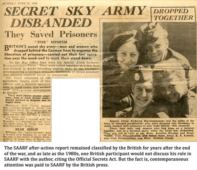 In the end, only one parachute mission was carried out: Operation Violet on 25 April 1945. Shortly afterwards, SAARF was disbanded.