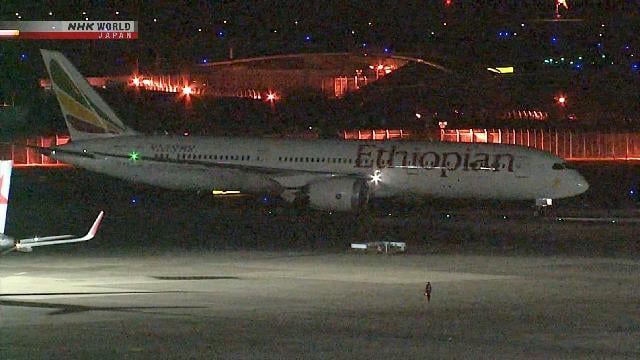 Charterflug zur Evakuierung von Japanern aus Ländern des Nahen Ostens in Japan. Der Flug mit 107 Passagieren kam am Sonntag gegen 19:30 Uhr aus dem Oman am Flughafen Narita in der Nähe von Tokio an
