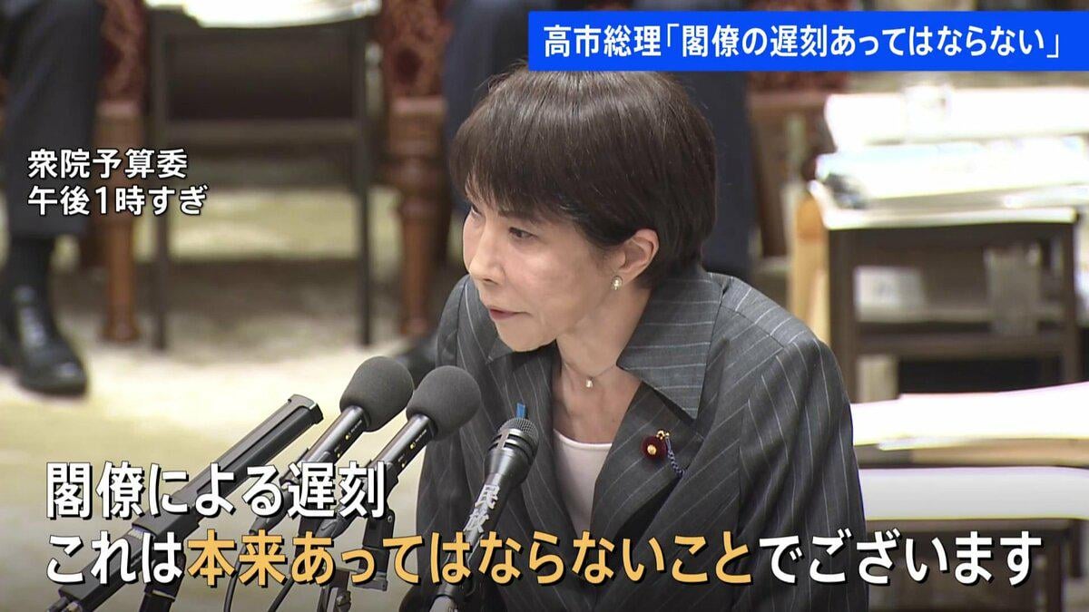 Premierminister Takaichi: „Kabinettsminister sollten nicht zu spät kommen“ als Reaktion auf die Verspätung von Minister Onoda bei einer Kabinettssitzung.