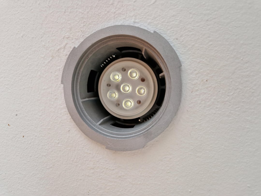 Výmena žiarovky v tomto type zapusteného svietidla je pomerne jednoduchá, ale vyžaduje si správny grif, aby ste nepoškodili päticu alebo pružiny. Ide o žiarovku typu GU10 (má dva hrubšie kolíky, ktoré sa zacvakávajú pootočením).