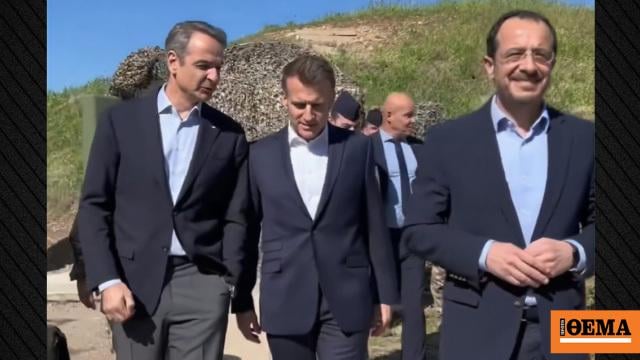 Macrons Beitrag auf Griechisch: Gemeinsam mit Christodoulidis und Mitsotakis arbeiten wir an der Sicherheit rund um Zypern, im östlichen Mittelmeer