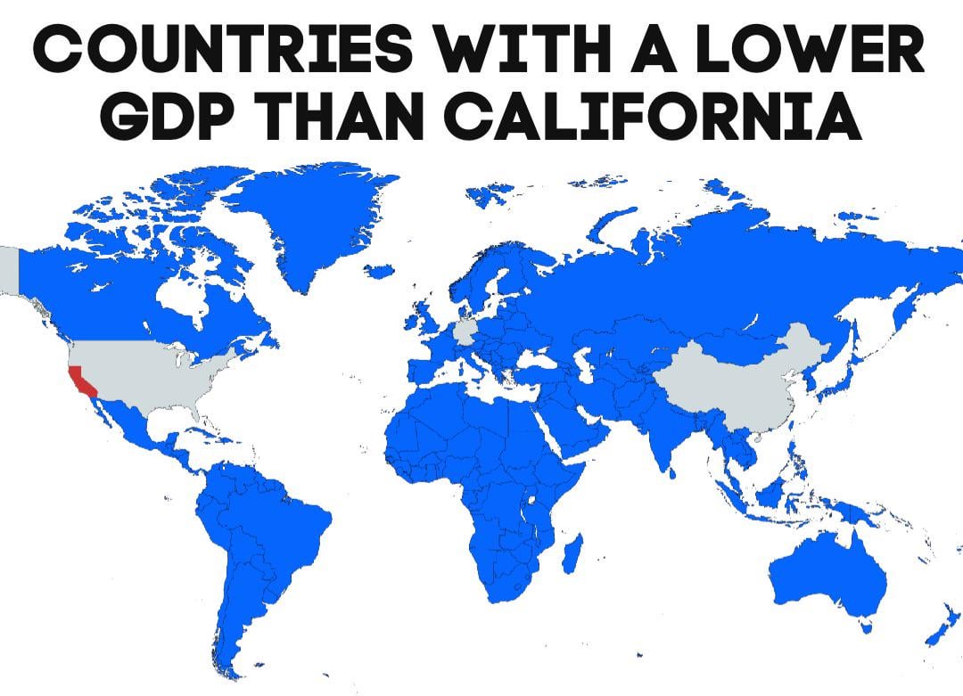 This is honestly really inaccurate. California has the largest GDO within the American domestic market. California has a lot of things it relies on the federal government for that it doesn’t pay. California doesn’t pay for its own defense, major infrastructure, healthcare, social security, etc. State GDPs can’t really be compared to GDPs of countries