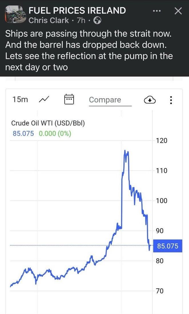 No it will be rise like a rocket fall like a feather. Double checked the AA website for historic fuel prices & back in 2022 when Ukraine war kicked off, Petrol shot up to €1.90/2.00 in May/June 2022 and did not fall back to normal prices until the following January.