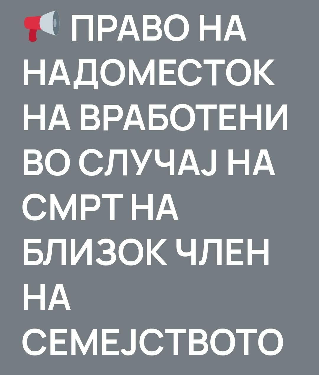 Татко ми и брат ми вработени во иста фирма, живеат на иста адреса – добија и двајцата исплата во вредност од по две просечни плати кога почина мајка ми. Јас не добив ништо бидејќи сум невработена, претпоставувам не ме следува ништо како невработена па не се ни распрашав, а живеам на иста адреса.