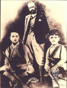 Στην τρίτη εικόνα διακρίνεται ο Ελευθέριος Βενιζέλος μαζί με τους δύο γιους του, τον Σοφοκλή και τον Κυριάκο.