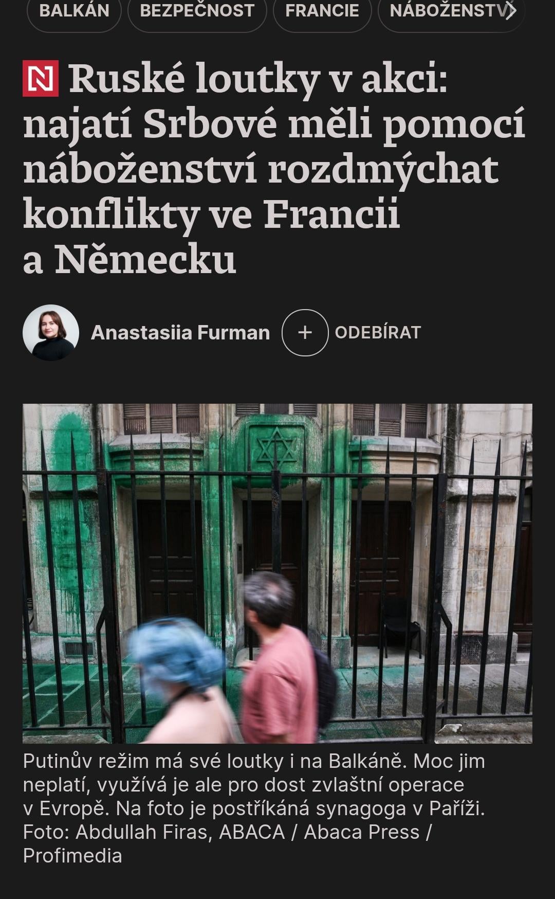 V tomto městě, vzdáleném asi devadesát kilometrů od Bělehradu, žijí tři čerstvě odsouzení „členové skupiny“, kteří pomáhali ruským tajným službám s plánem destabilizovat Francii a Německo. Od dubna do září loňského roku provedli celkem čtyři operace, všechny spojené s náboženstvím
