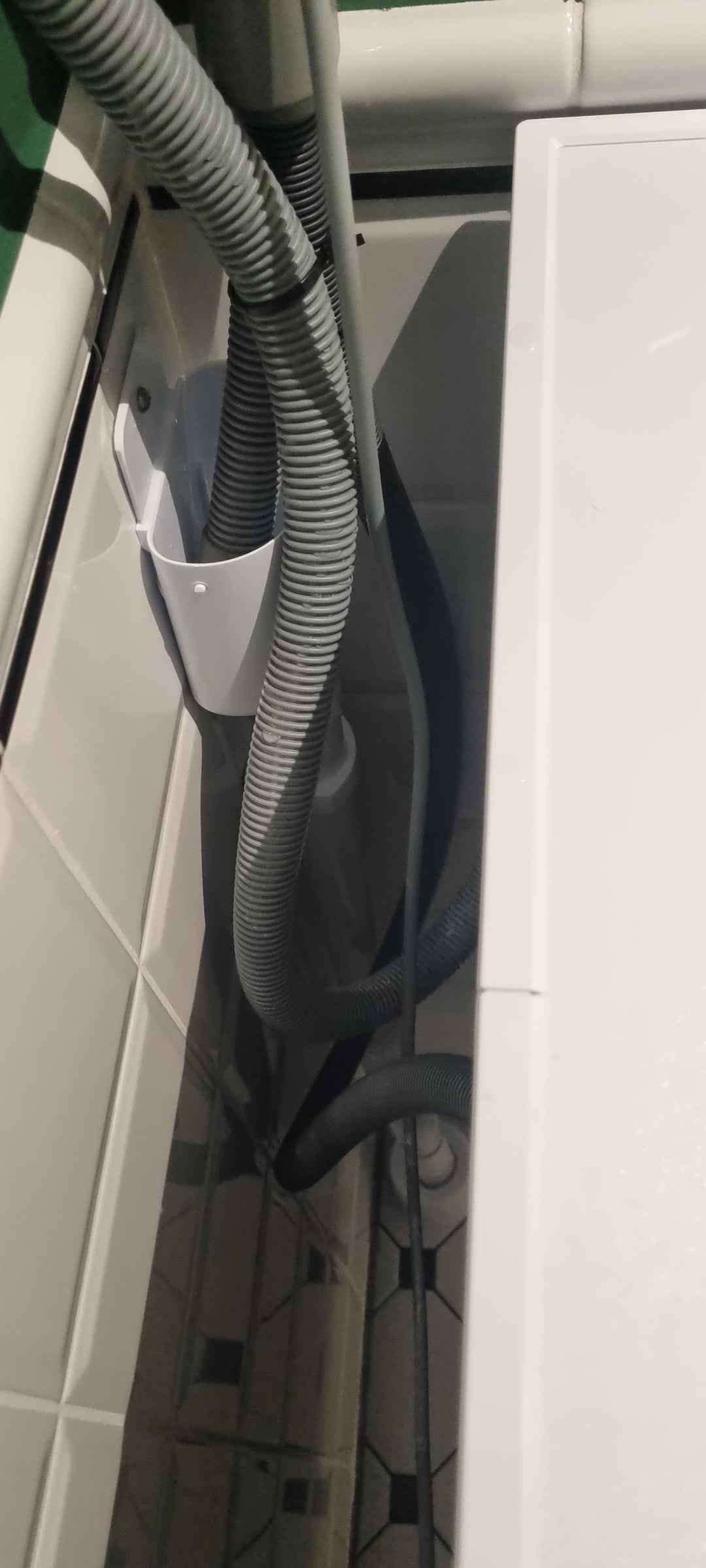 Komplett renoviertes Badezimmer mit neu installierter Waschmaschine. Nach etwa 5 Wäschen begann es zu überfluten "Köpfe" bei jedem Waschgang (siehe Bild 2, nein, der Schlauch blockiert keine Luft). Der Klempner war hier und hat das Rohr vergrößert und den Siphon ausgetauscht, aber es kommt immer noch zu Überschwemmungen. Kann mir jemand helfen, den Grund zu verstehen und was man dagegen tun kann? Google ist nicht hilfreich und ich habe gesehen, dass andere ein ähnliches Setup haben, aber bei ihnen funktioniert es :\ Danke für die Antwort!