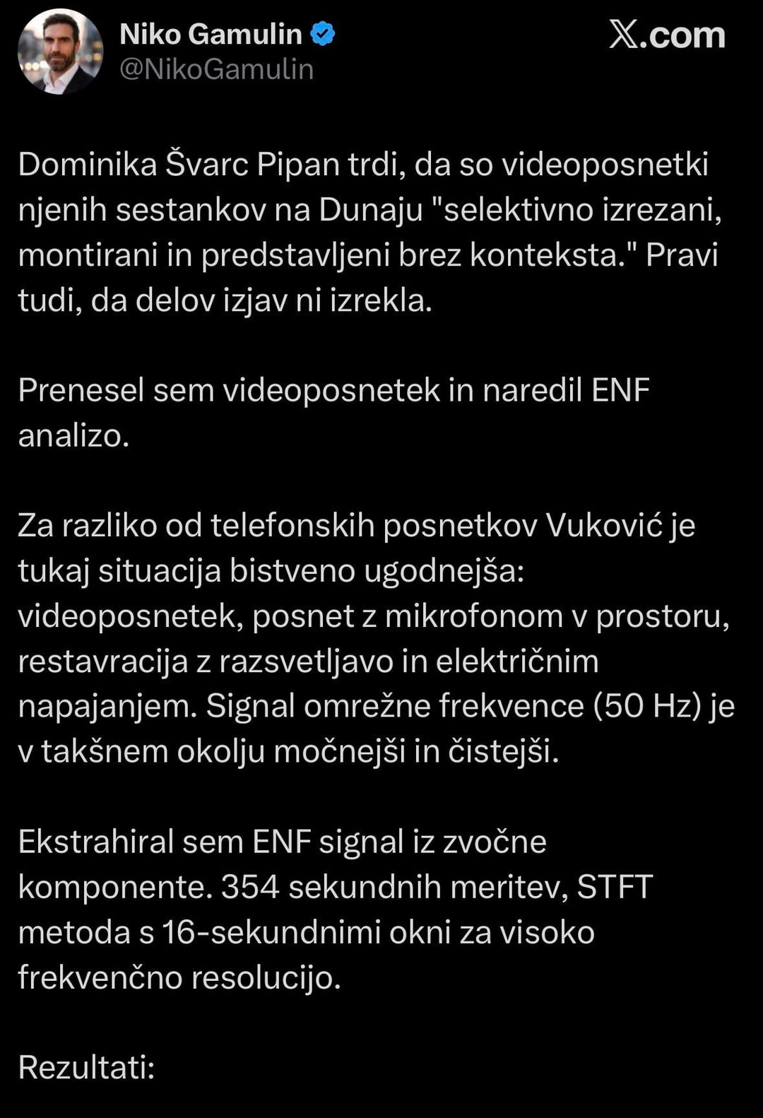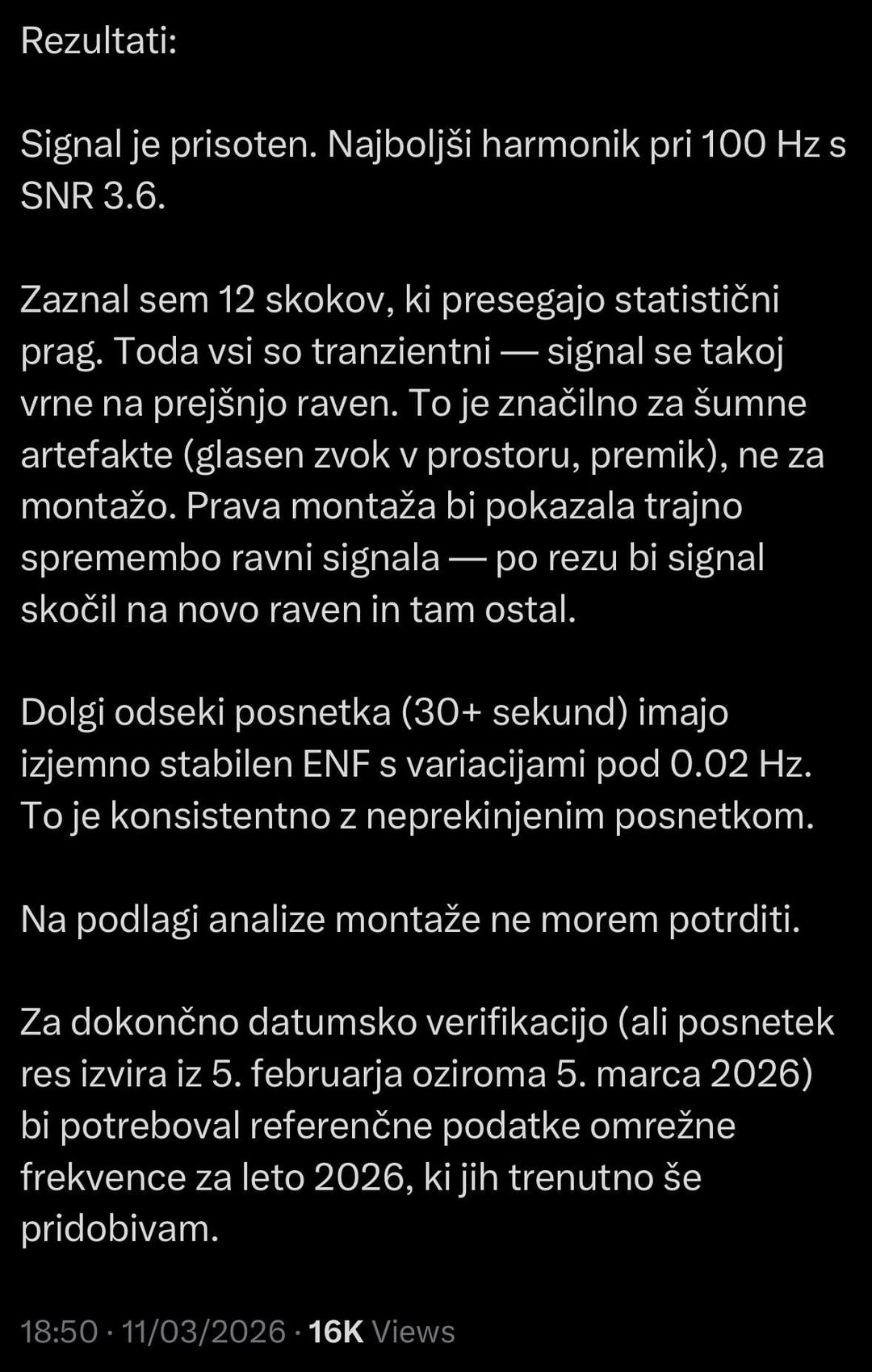 Gamulin je glede ENF analize isto trdil za posnetke od Maske padajo v preteklih dneh, a sem preveril in tam signala pri 200Hz, o katerem piše, ni. Žal to vzbuja dvom tudi o vseh ostalih njegovih trditvah. (ne trdim, da so posnetki ponarejeni, samo da njegova analiza tega ne ovrže)