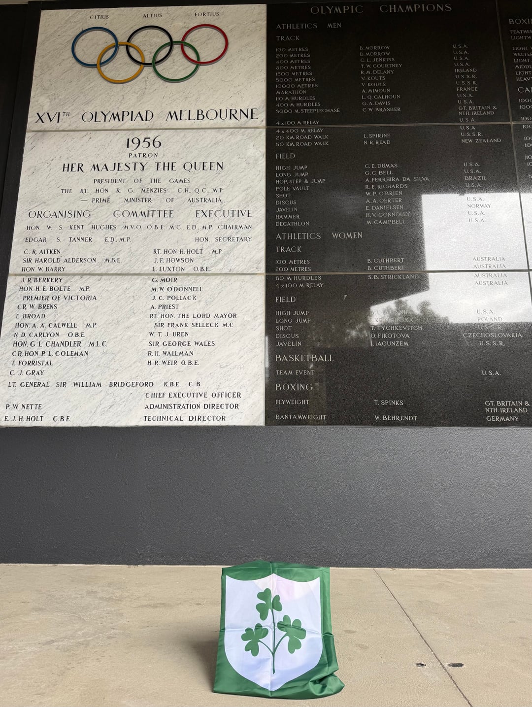 Als ich heute aufwachte, hörte ich die traurige Nachricht über Ronnie Delany und verspürte den Drang, mich auf den Weg zum Melbourne Cricket Ground zu machen, wo Delanys Name stolz auf Platz 5 der Liste der Olympiasieger der Olympischen Spiele 1956 steht.