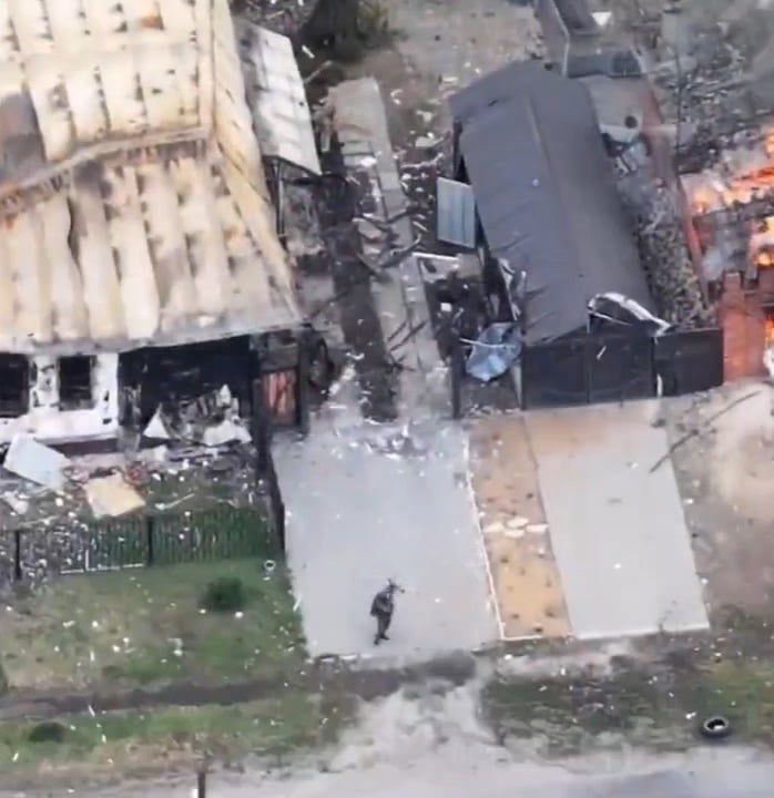 Ein russischer Soldat, der versucht, eine Drohne abzuschießen, trifft stattdessen seinen Kameraden, der daraufhin ebenfalls die Drohne nimmt. März 2026.