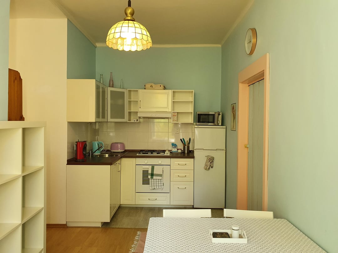 Pokud budeš v kuchyni sama, tak ji udělej do tvaru U, získáš trochu víc pracovní plochy, ale omezíš si prostor na pohyb. Současná dispozice mi přijde dost špatná – obvykle jídlo posouváš stylem lednice > dřez > krájecí plocha > vařič. V tomto pořadí bys měla mít seřazenou linku. Kuchyně je fakt maličká, takže ideálně ji využij co nejvíc vertikálně.