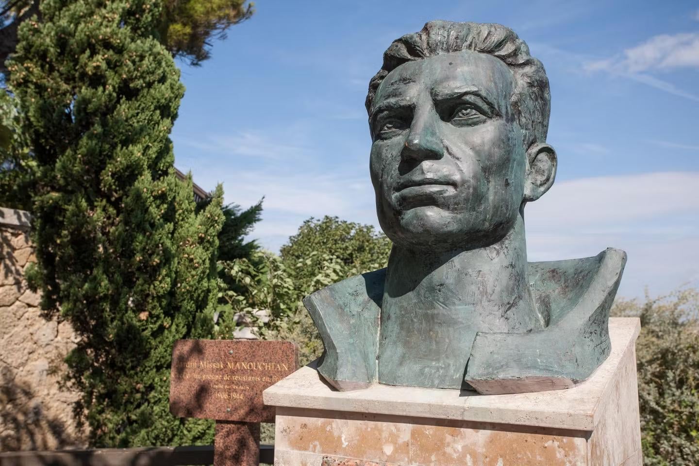 Die Büste des französisch-armenischen Nationalhelden und Widerstandskämpfers Missak Manouchian aus dem Zweiten Weltkrieg wird in einem der Parks im Zentrum von Eriwan aufgestellt, der seinen Namen trägt