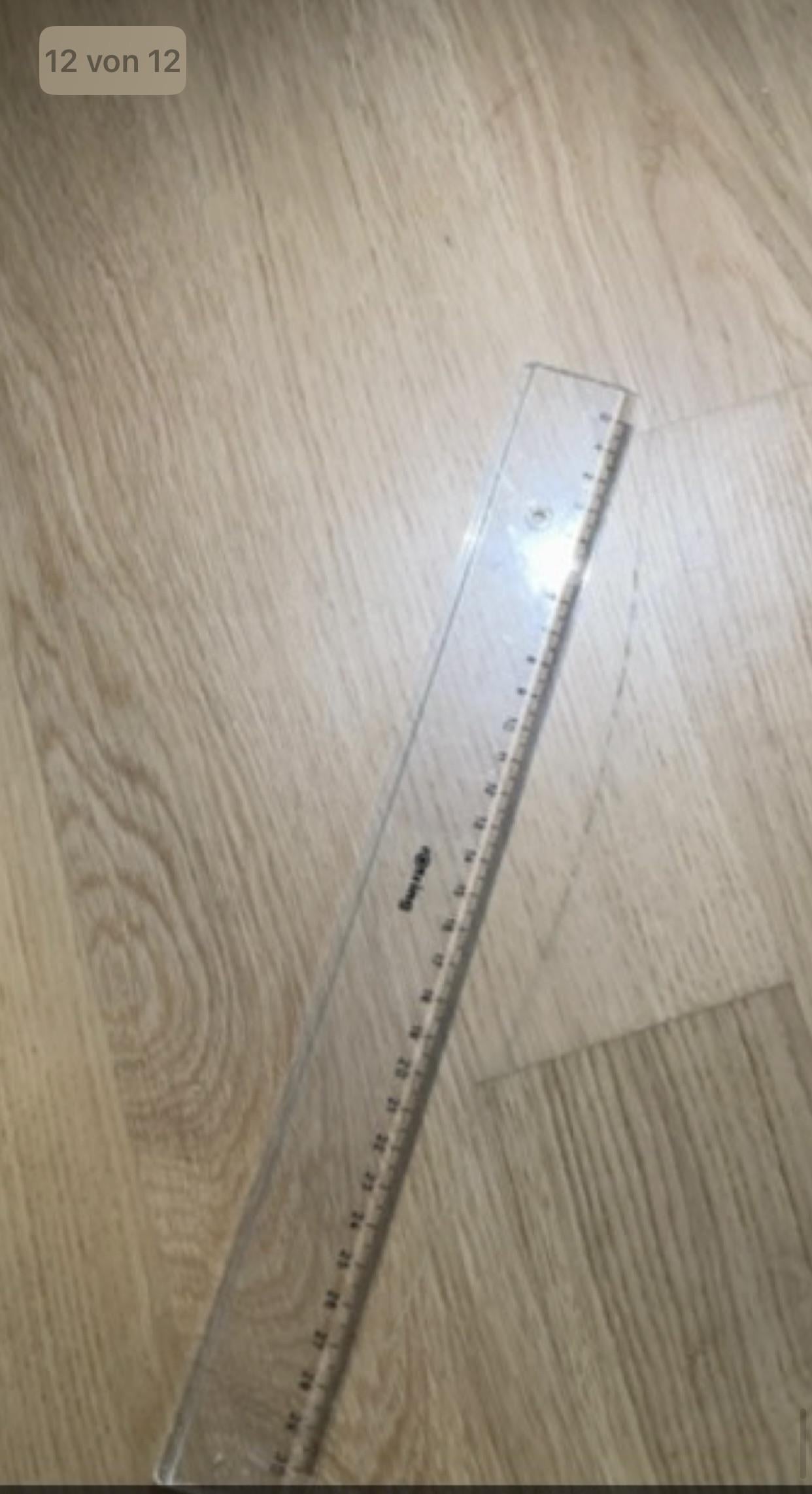 Auf dem Foto sieht man den Kratzer (Lineal daneben für die Größe).