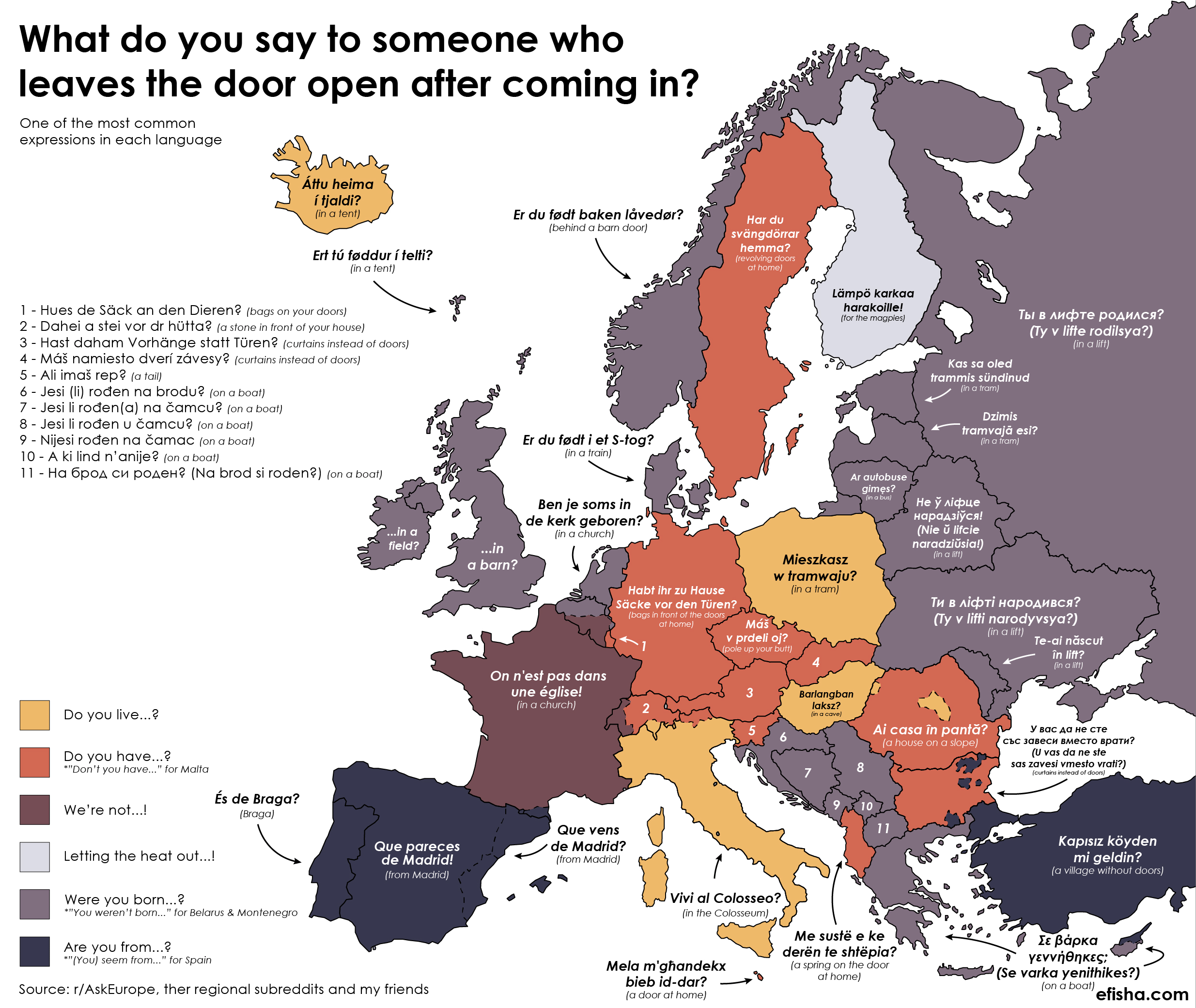 The Hungarian one calling you a caveman for letting the door hang open is my favorite. Like sorry I forgot we evolved past shutting things behind us. My bad.