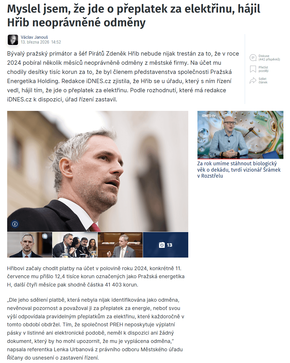 Jedinej problém s touhle údajnou korupcí je, že na ni Hřib upozornil sám, pokud se nepletu