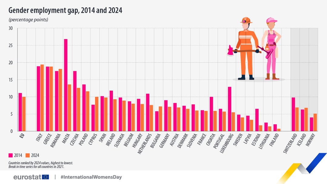 Il "Beschäftigungslücke" Es handelt sich um den prozentualen Unterschied zwischen den Beschäftigungsquoten von Männern und Frauen – es handelt sich NICHT um das geschlechtsspezifische Lohngefälle.
