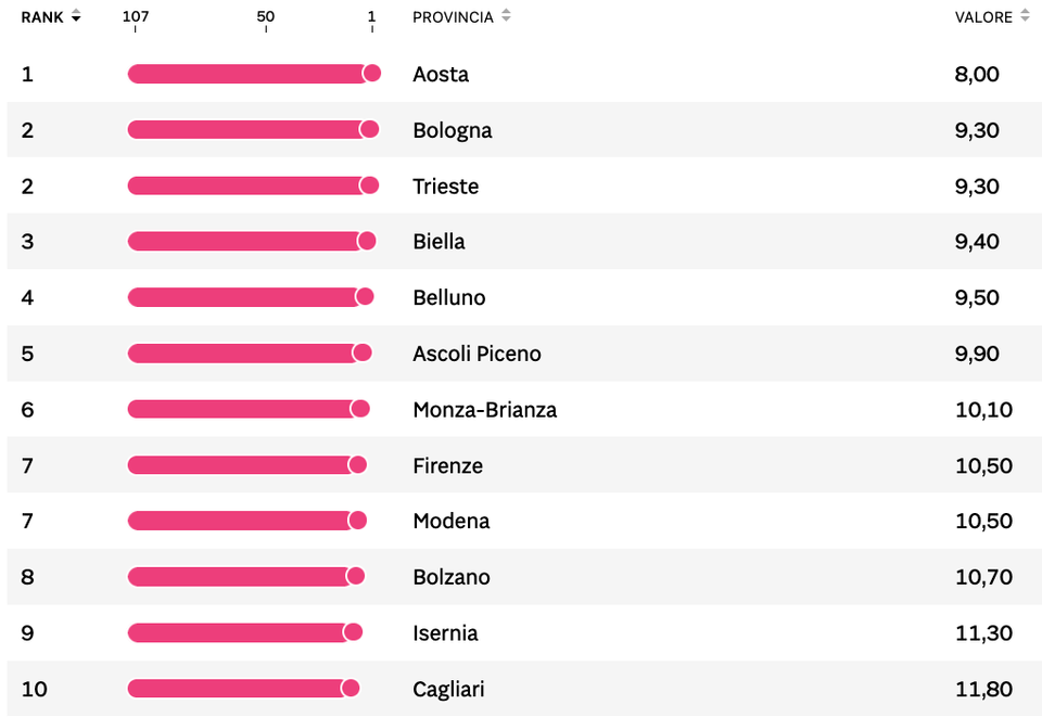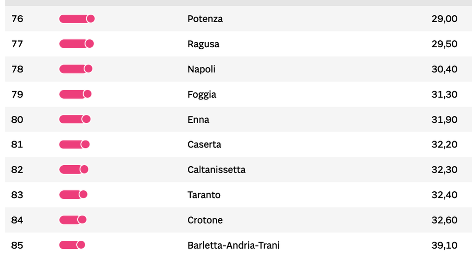 Detailliert nach italienischer Provinz hier: https://lab24.ilsole24ore.com/qualita-della-vita-donne//tabelle/2024/gap-occupazionale-di-genere#