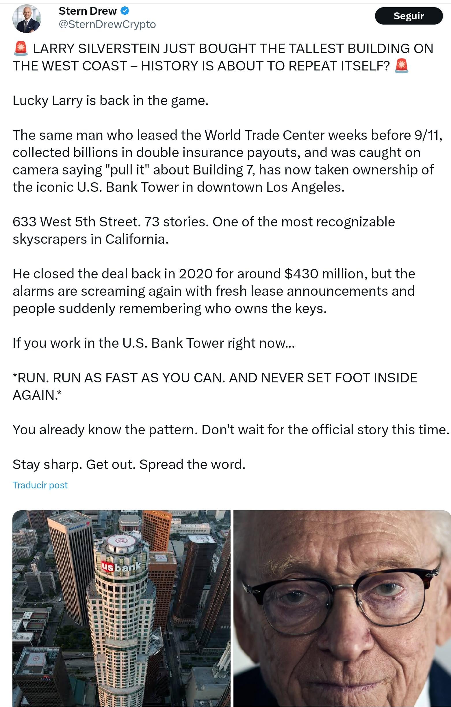 I mean that would just bee too on the nose and give away 9/11 if another building this guy owns gets attacked by terrorists, right in the state they’re warning will get terror attacked lol