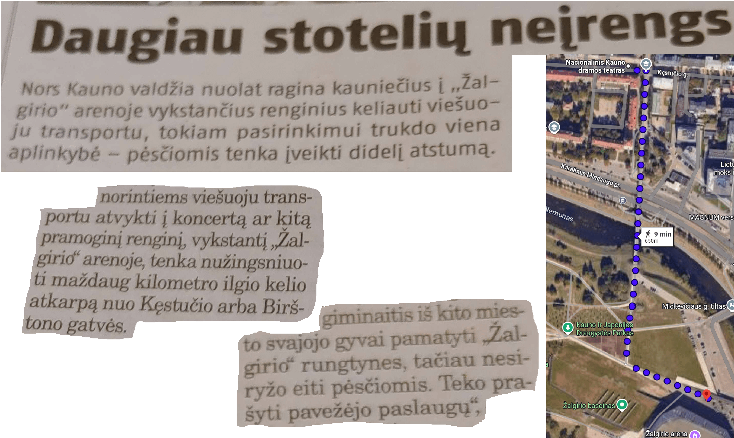du kart per savaitę varau į žalgirio arena viešuoju, tai kartais išties užknisa tas 10 min ėjimas pirmyn atgal bet tikrai nėra problema. aš toje vietoje autobusų visiškai neįsivaizduoju ir džiaugiuosi, kad “verčia” paeit – ten visai gražu kol nežiūri į akropolio pusę ir matai kelią su penkiasdešimt juostų